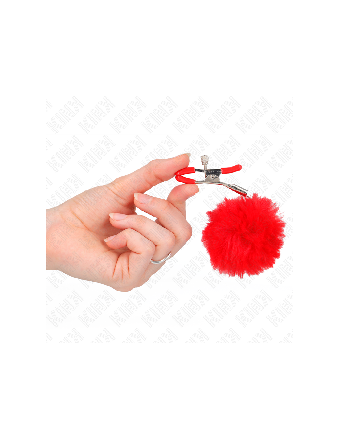 KINK - Dirbtinio kailio spenelių laikiklis su kamuoliukais, raudonas, 6 cm