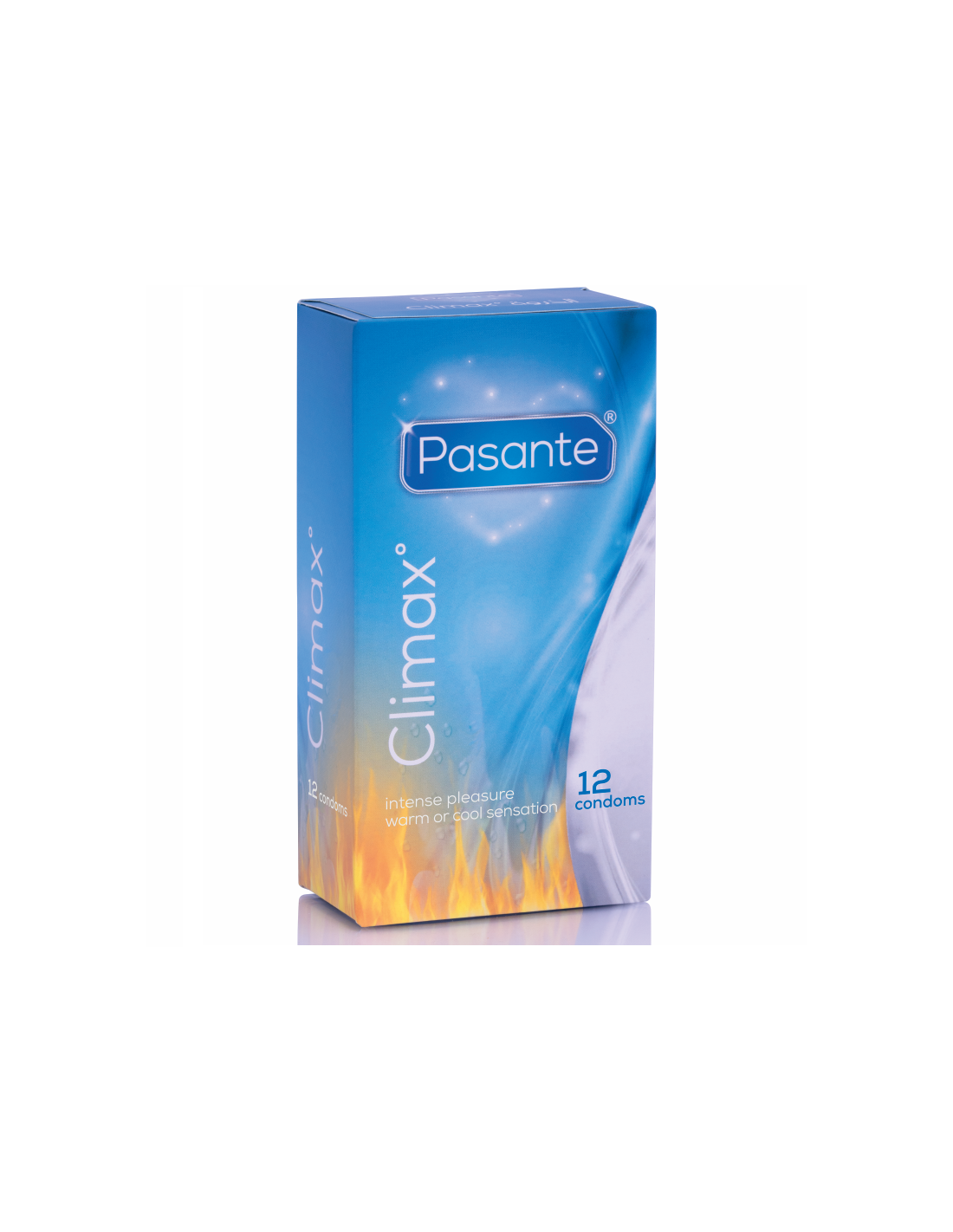 „Pasante Climax“ – tai briaunoti prezervatyvai su šilumos arba šalčio pojūčiu. Lygiagrečios tekstūros, natūralios spalvos.