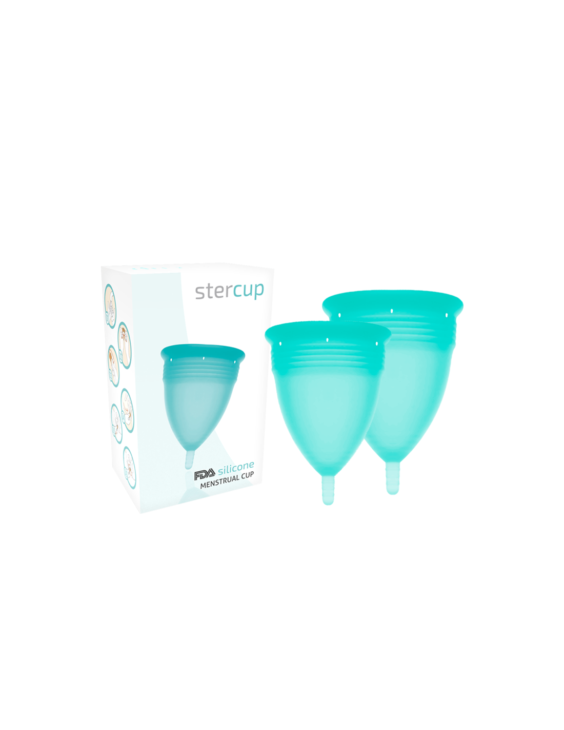 STERCUP - FDA patvirtinta silikoninė menstruacinė taurelė, pakuotės dydis SL, akvamarino spalvos