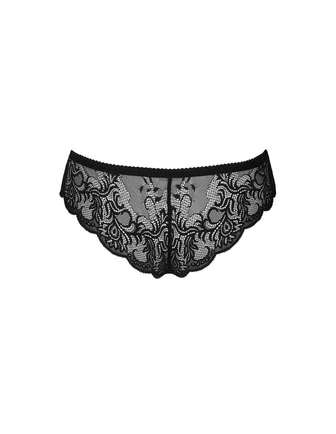 Siūlomas modelis yra itin jausmingas ir seksualus. Kelnaitės yra labai įspūdingos ir viliojančios su permatomais nėriniais. Nėriniai yra tvirti, puikios kokybės, gražiai pagaminti. Medžiaga taip pat minkšta ir subtili, puikiai prisitaiko prie kūno formų, subtiliai ją pabrėždama. Kelnaitės turi skeltuką tarpkojyje. Jų charakteringas bruožas – drąsus priekis ir elegantiška, gražiai išbaigta nugara. Tai neabejotinai apatiniai ypatingoms progoms, vakariniams drabužiams. Šis modelis idealiai tinka moterims, kurios vertina klasikinę juodą spalvą kartu su puošniu kirpimu ir jausmingais nėriniais. Tačiau puošni kelnaičių forma nepadaro jų nepatogių, priešingai, jos yra itin patogios dėvėti ir laidžios orui. Be to, padeda 2 dydžiai: S/M ir L/XL, kurių dėka galime išsirinkti sau tobulą apatinių dydį. Šis modelis gali būti puiki dovana ypatingai progai: jubiliejui, Valentino dienai ar Šv. Nikolajaus dienai, nors progų įteikti dovaną pasitaiko beveik kasdien.
