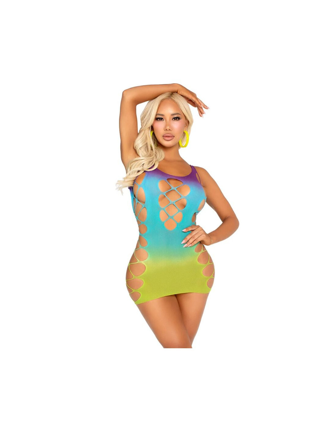 LEG AVENUE DRESSESPatraukite dėmesį su vientisa „Ombre Faux Lace-Up“ mini suknele – įspūdingu drąsaus dizaino ir elegantiško rafinuotumo deriniu. Ši aptempta mini suknelė pasižymi gradientiniu „Ombre“ efektu, kuris išryškina jūsų kūno linkius, o dirbtinių nėrinių detalės sukuria nenugalimą korseto įkvėptą iliuziją.