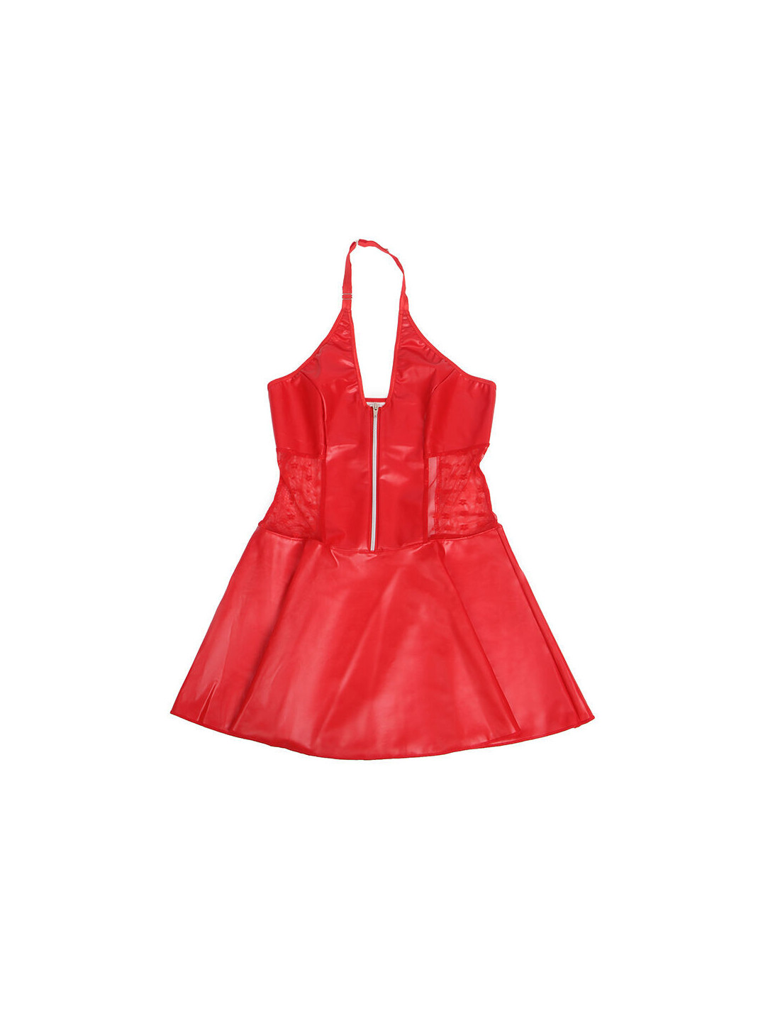 SUBBLIME - 957728 LACE ZIPPER LEATHER DRESS RED S-M