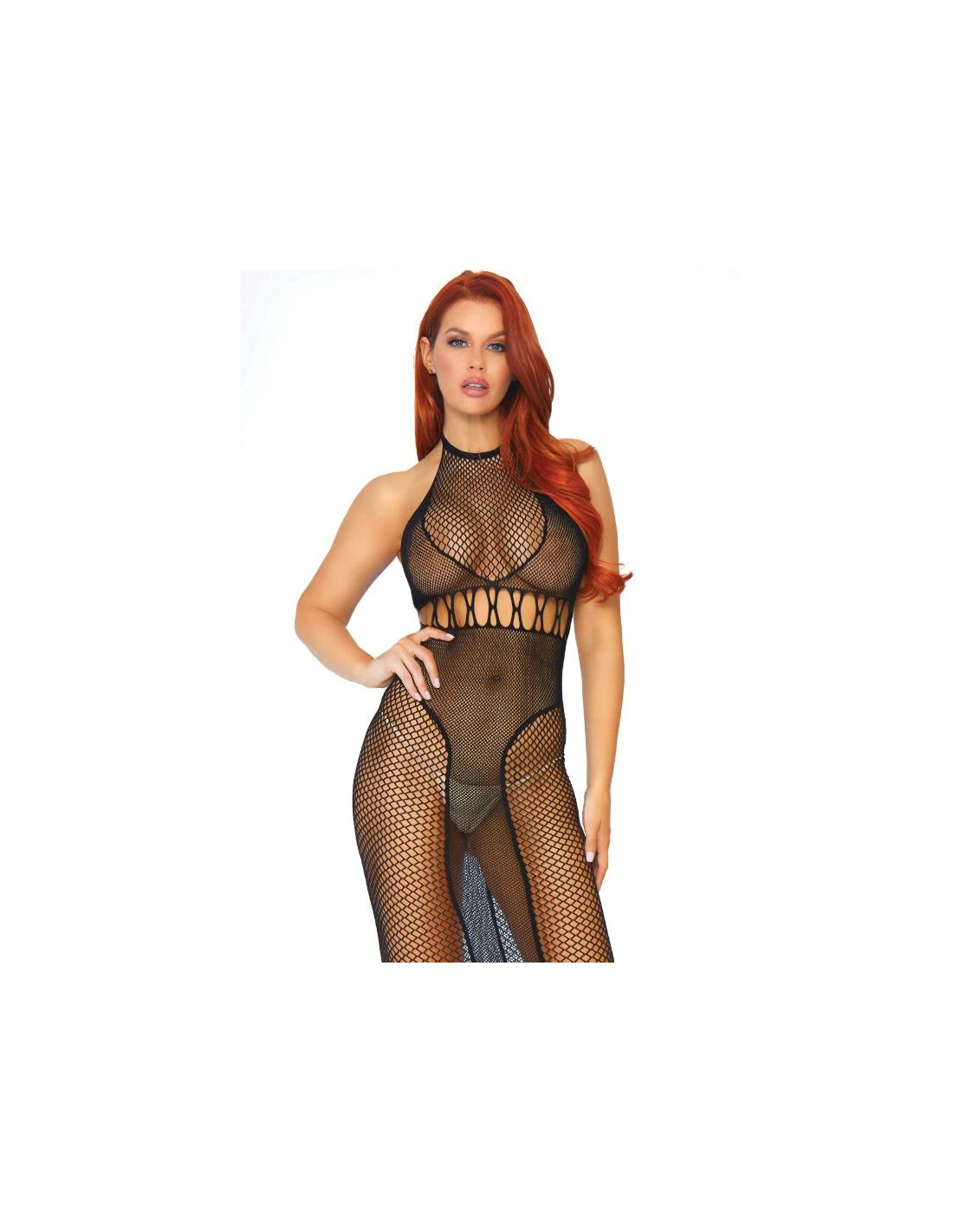 Suknelė be nugaros su dvigubu tinkleliu ir iškirpte. Pajuskite gundymo galią su savo mėgstamiausiu apatinio trikotažo prekės ženklu: Leg Avenue.