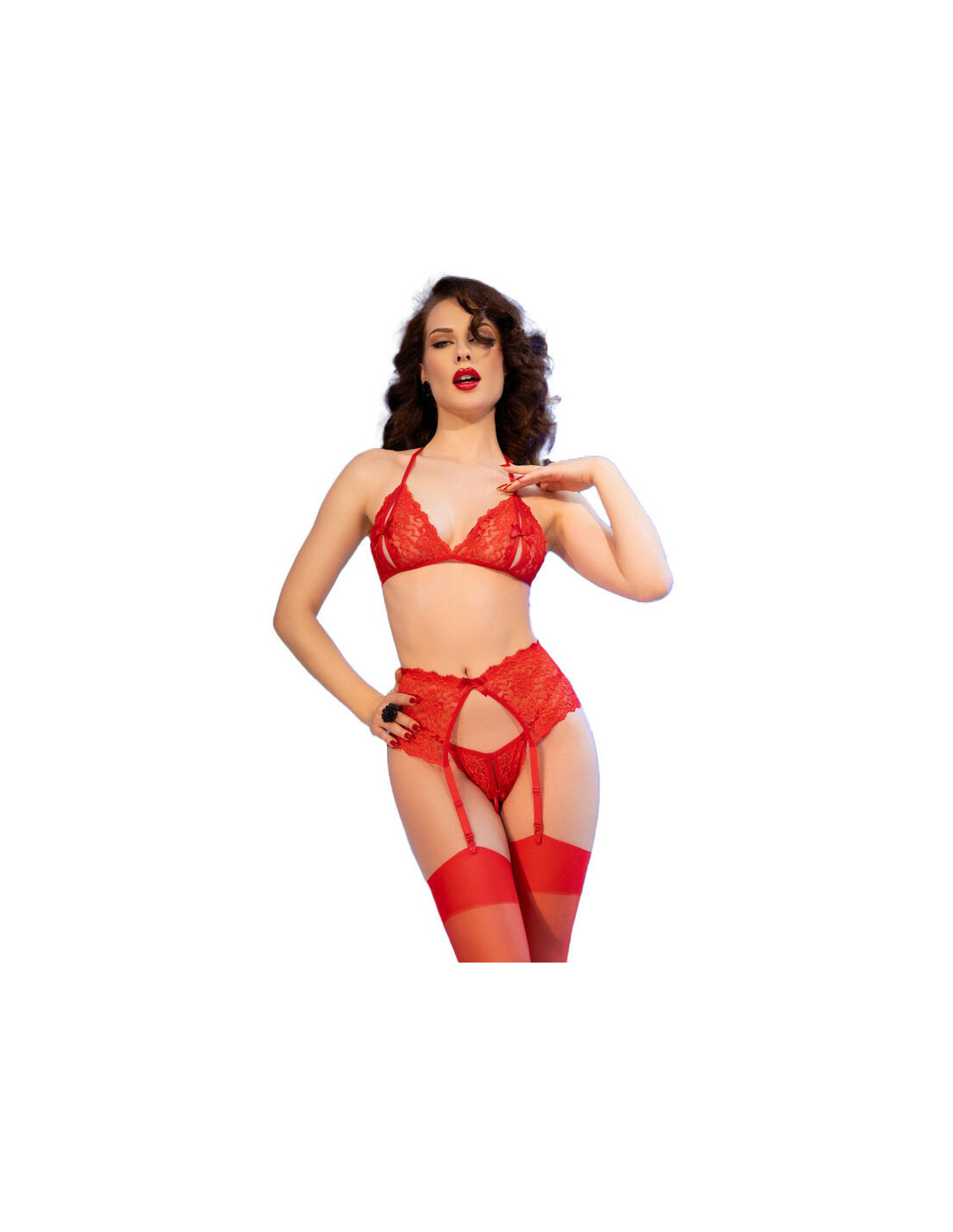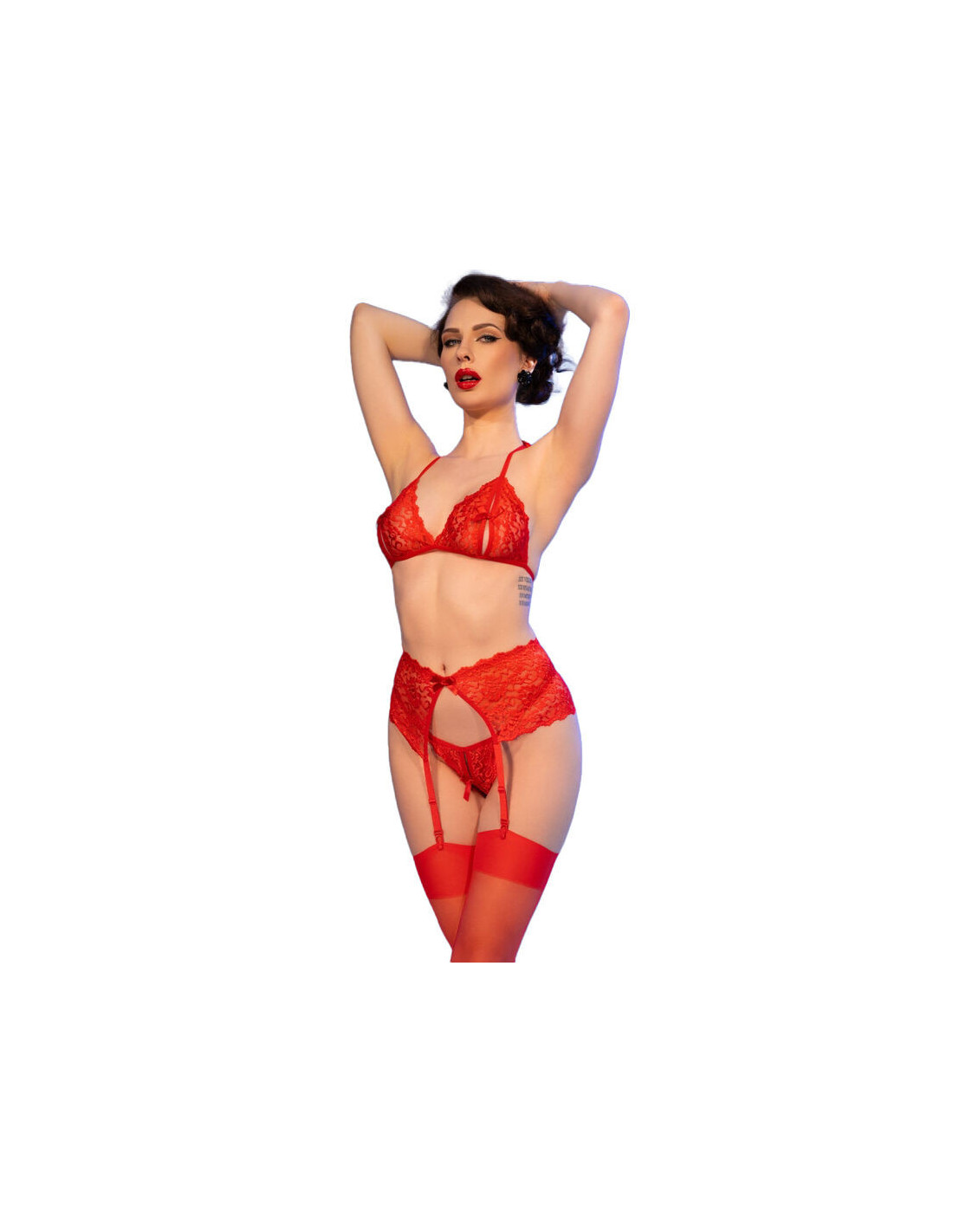 Pažadinkite savo pojūčius su šiuo ugningai raudonu nėriniuotu rinkiniu!