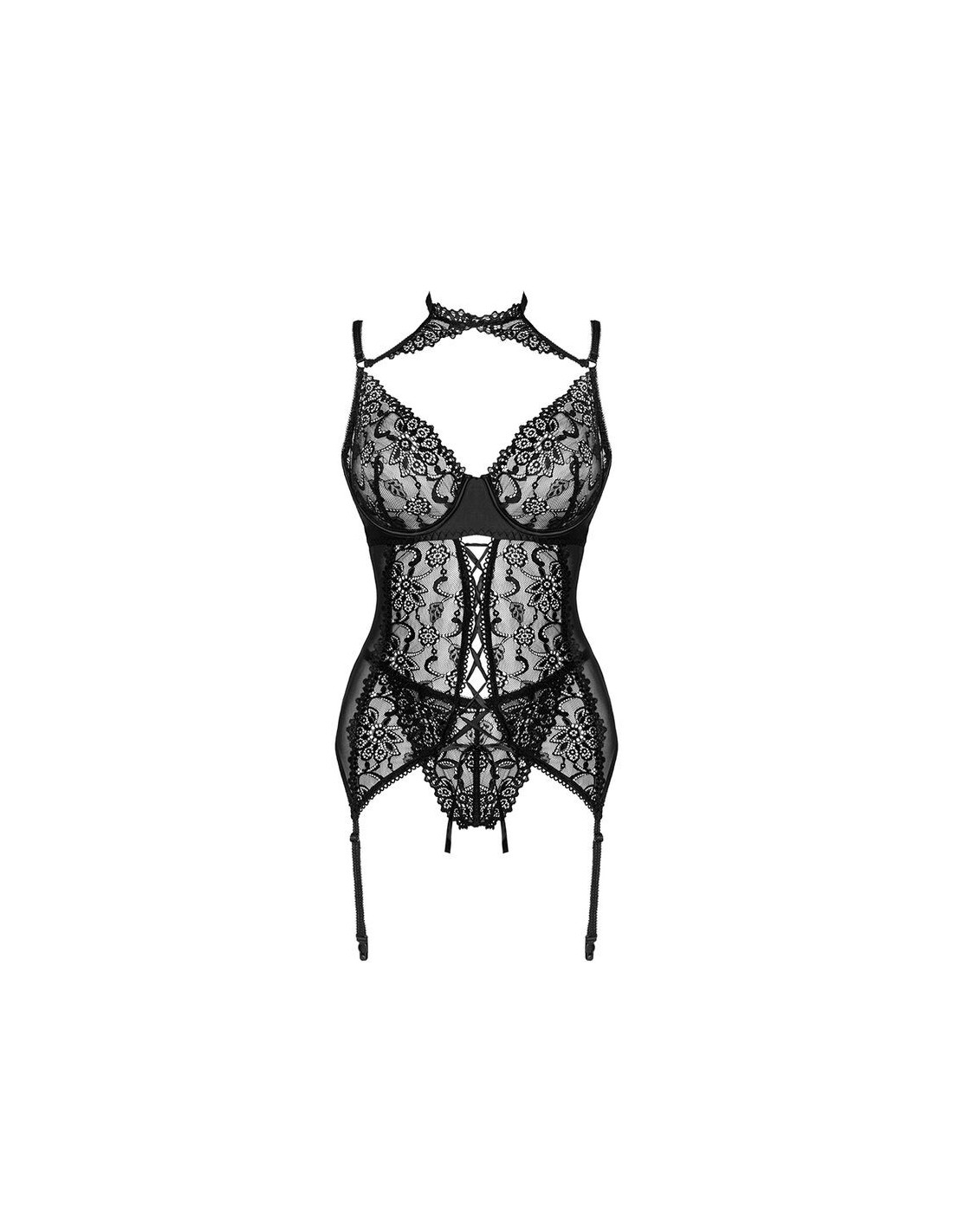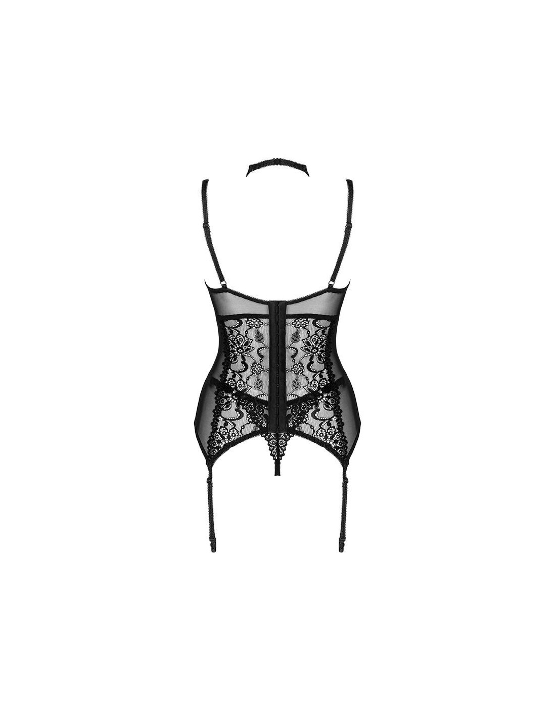 LIVCO CORSETTI SETS„Giellandra“ korsetas pojūčiams – tai prabangaus lenkų prekės ženklo „LivCo Corsetti Fashion“ rinkinys, susidedantis iš 2 elementų – korseto ir stringų. Apatiniai yra klasikinės juodos spalvos. Korsetas užsegamas kabliukais, kurie leidžia reguliuoti dydį ir garantuoja komfortą. Taip pat galima reguliuoti petnešėlių ilgį ir prisegti kojines, kurios labai paįvairins stilių. Tai puikus pasiūlymas moterims, kurios vertina patogumą, bet nenori atsisakyti jausmingos išvaizdos. Apatiniai pagaminti iš 90 % poliamido ir 10 % elastano. Šis medžiagų derinys daro aprangą labai lanksčią ir nevaržo judesių. Komplekte yra dekoratyvinių įdėklų iš patvarių nėrinių, kurie pabrėžia moteriškas formas visose svarbiausiose vietose. Iškirptė ir surišimas ties pilvuku suteikia korsetui rafinuotumo ir tuo pačiu palieka erdvės vaizduotei. Neįprastas elementas – kaklo juostelė, kuri atkreips dėmesį į kaklą ir raktikaulius. Šis seksualus korsetas tikrai pagyvins daugelį romantiškų vakarų.
