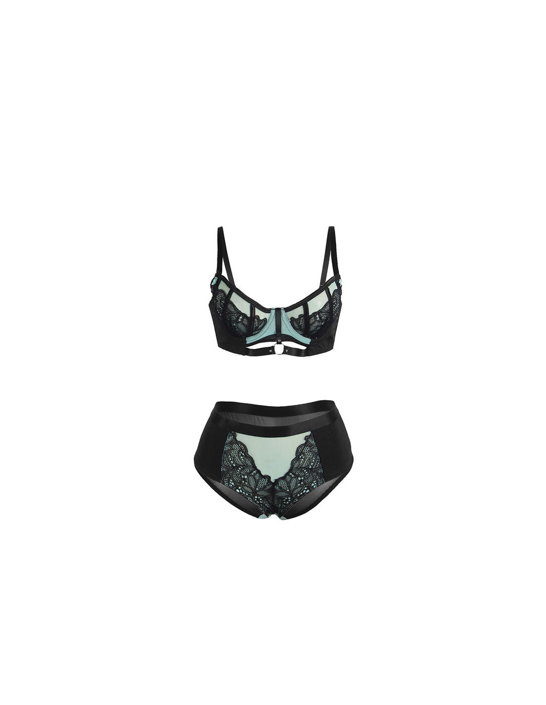 SUBBLIME SETSIšsiskirkite su „SUBBLIME“ žaliu nėrinių ir tinklelio apatinių komplektu su „Push-up“ liemenėle – drabužiu, sukurtu suderinti subtilumą, eleganciją ir jausmingumą viename. Šis komplektas paryškina jūsų figūrą romantišku ir rafinuotu dizainu, užtikrinančiu, kad kiekviena detalė būtų apgalvota, jog jaustumėtės unikaliai ir užtikrintai.