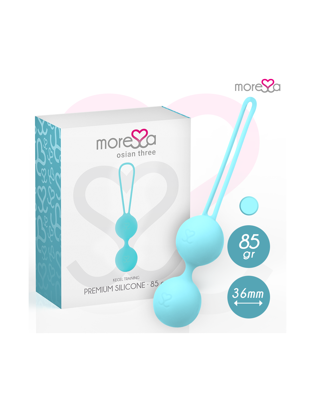 „Moressa OSIAN“ kiniški kamuoliukai padengti 100 % aukštos kokybės silikonu. Jie pasižymi elegantišku dizainu, trijų spalvų ir nepakartojamu minkštu bei labai patogiu aksominiu prisilietimu.