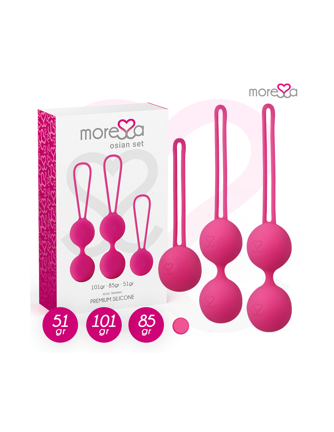 MORESSA„Moressa OSIAN“ kiniški kamuoliukai padengti 100 % aukštos kokybės silikonu. Jie pasižymi elegantišku dizainu, trijų spalvų ir nepakartojamu minkštu bei labai patogiu aksominiu prisilietimu.