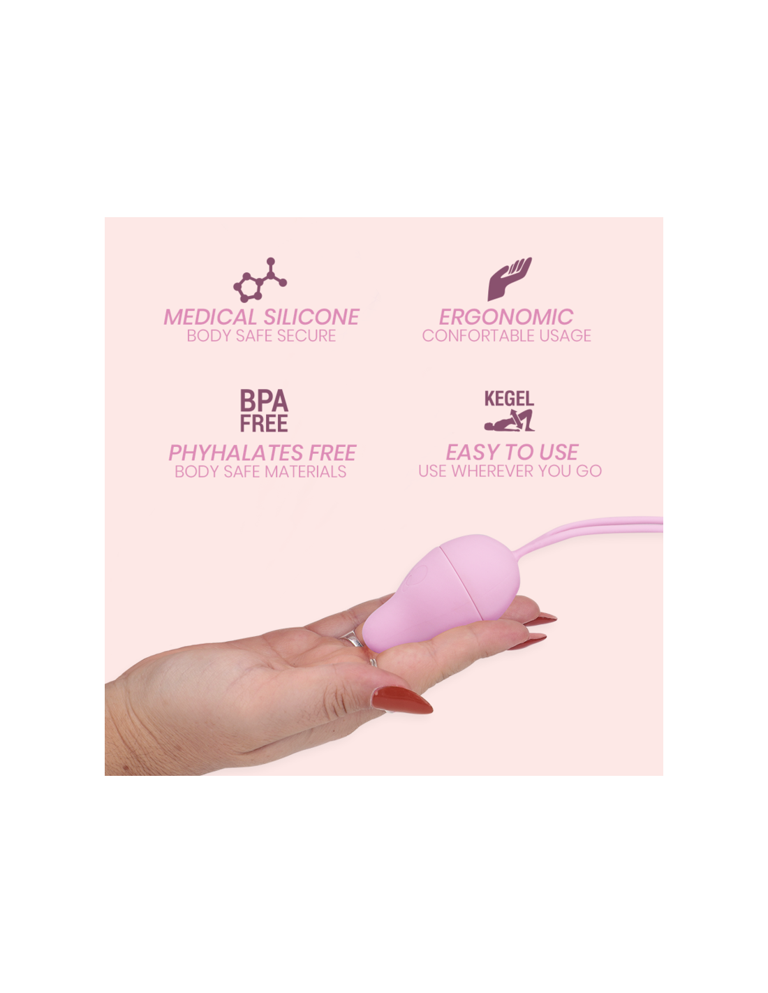 - „Intimichic Pelvis Health I“ + kamuoliukas, kurio skersmuo 22 mm, svoris 35 gramai