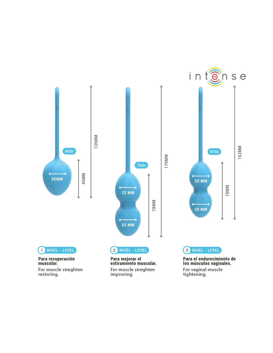 INTENSE HEALTH KEGEL„Charli – Kegel“ kamuoliukų rinkinys yra puikus sąjungininkas moterims, norinčioms palaipsniui, patogiai ir saugiai sustiprinti dubens dugno raumenis. Sukurtas atsižvelgiant į moters anatomiją ir skirtingus raumenų treniravimo etapus, šis 3 kamuoliukų rinkinys idealiai tinka tiek pradedantiesiems, tiek pažengusiems naudotojams, norintiems pagerinti savo intymią savijautą ir makšties sveikatą. Dėl ergonomiško dizaino ir pagaminimo iš itin minkšto medicininės kokybės silikono šis rinkinys siūlo malonią ir veiksmingą patirtį, kad ir kokioje aplinkoje nuspręstumėte jį naudoti: namuose, darbe ar net vandenyje. Kiekvienas kamuoliukas sukurtas taip, kad užtikrintų skirtingą mankštos lygį, leisdamas jums tobulėti savo tempu ir pagal savo poreikius.