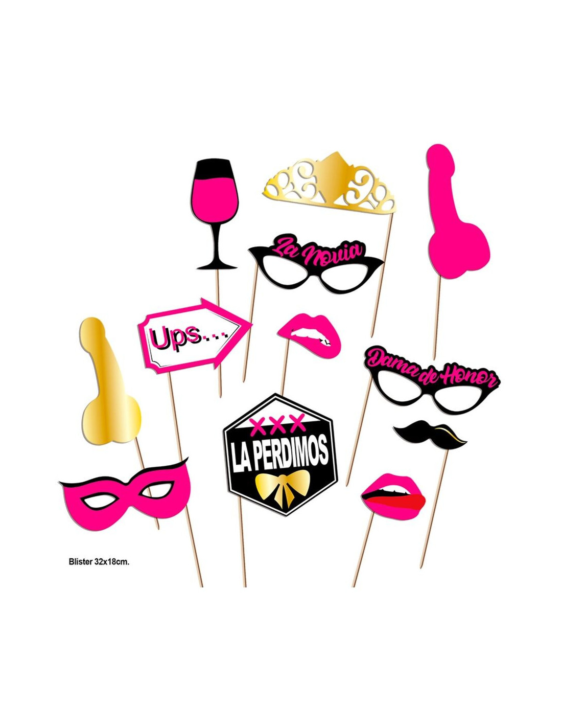 The 12-piece Photocall Set Model 2 is a collection of fun, provocative, and original accessories, designed to add a touch of humor and mischief to any photo session. With a selection of renewed and bold designs, they serve to draw attention, break the ice among guests, or simply immortalize the craziest moments in a naughty and wordless way.
