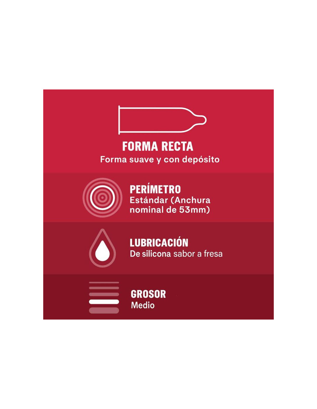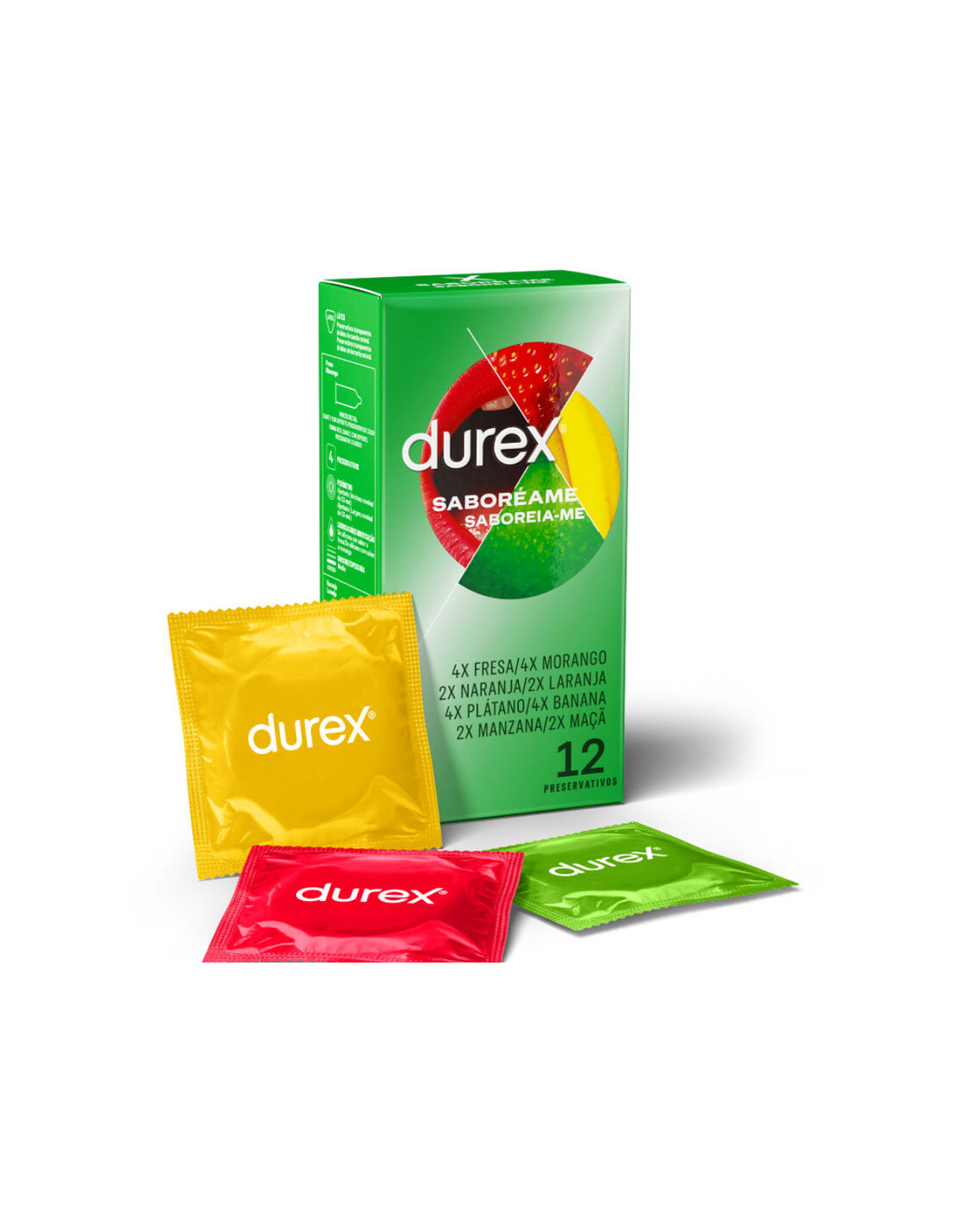 „Durex taste me“ – tai prezervatyvai su vaisių skoniais, suteikiančiais papildomo džiaugsmo. Prezervatyvai su įvairiais aromatais ir skoniais: braškių, bananų, apelsinų ir obuolių. „Durex“ prezervatyvai „taste me“ savo spalvomis ir skoniais suteiks jūsų santykiams žaismingumo.