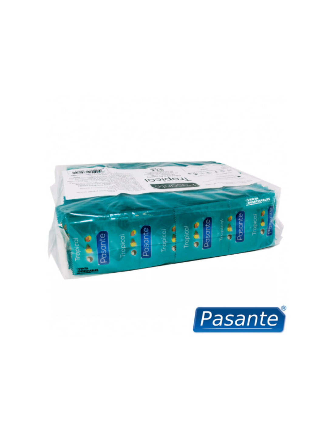 „Pasante Tropical“ prezervatyvai siūlo tris egzotiškus skonius: mango (apelsinų – 48 vienetai), ananasų (geltonų – 48 vienetai) ir kokoso (skaidrūs – 48 vienetai). Lygūs, lygiagretūs ir su snapeliu prezervatyvai.