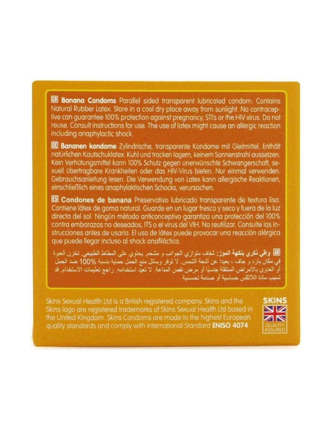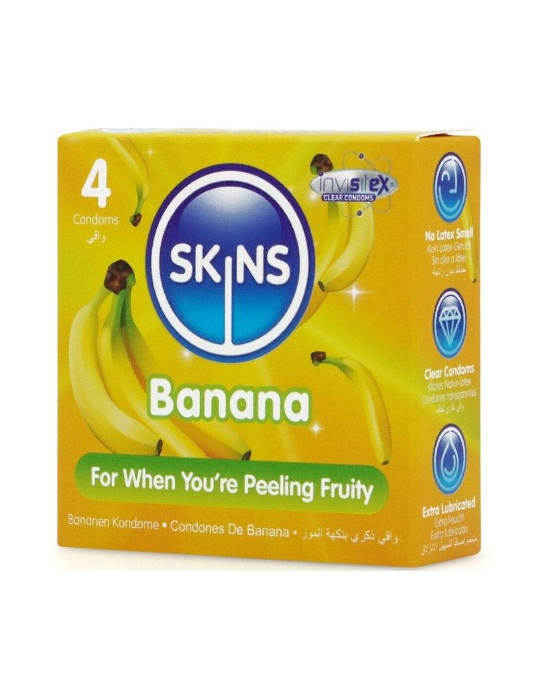 Palepinkite savo skonio receptorius išskirtiniu „Skins“ bananų skonio prezervatyvų skoniu! 4 atskirai supakuoti bananų skonio prezervatyvai, kad būtų lengva naudoti. Atrodykite gerai! Jauskitės gerai! Mėgaukitės natūraliai geresniu seksu su prezervatyvu, kuris jaučiasi kaip jūsų dalis. Toks skaidrus ir plonas, kad jaučiasi kaip antra oda. „Skins“ prezervatyvai leidžia saugiai mėgautis seksu neprarandant malonumo!