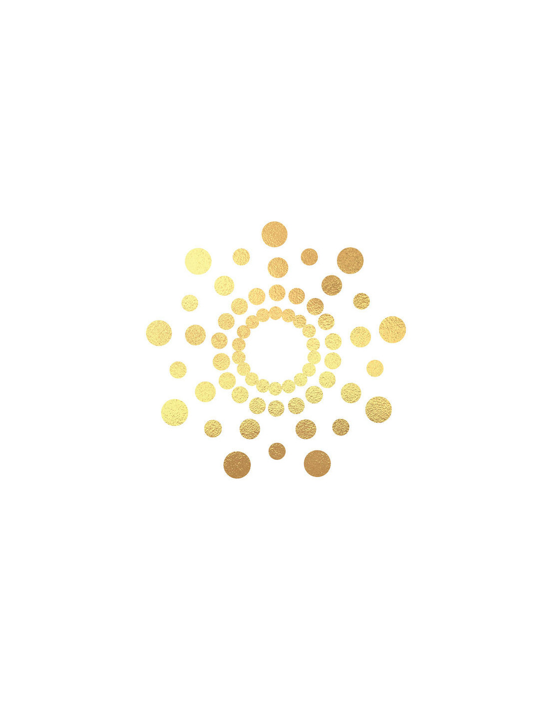Trijų skirtingų spalvų laikinų tatuiruočių rinkinys: aukso, sidabro ir vario.