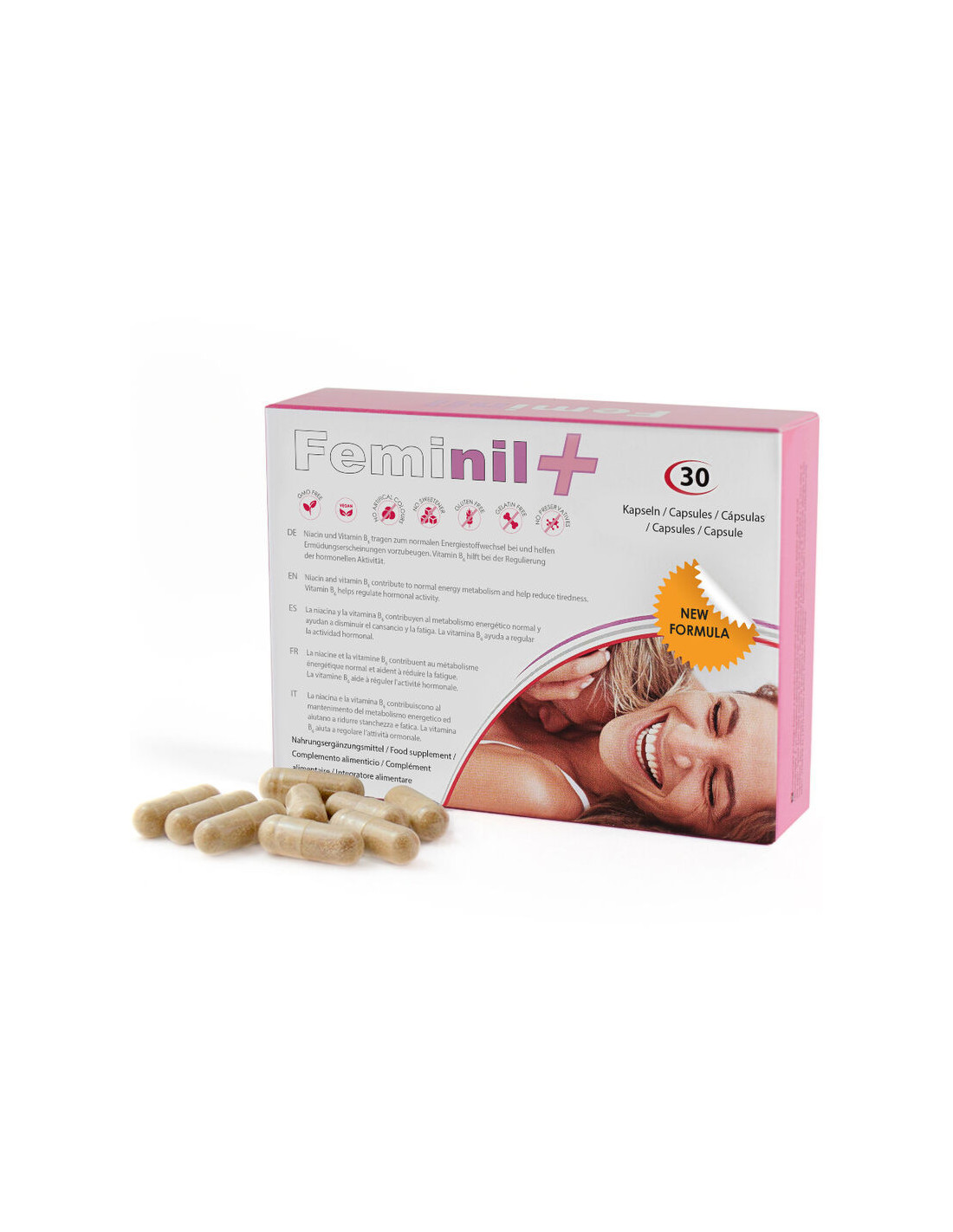 - PADIDINKITE MOTERŲ LYTIPĮ. „Feminil+“ kapsulės padeda pagerinti kraujotaką, todėl makšties sritis atsipalaiduoja, taip padidindama lubrikaciją ir skatindama padidėjusį libido.