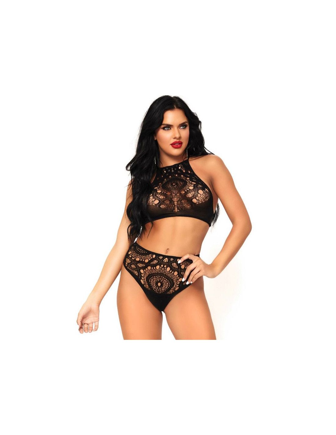 2 vnt. Nėrinių nėrinių liemenėlė su dirželiais nugaroje ir derančiais aukšto juosmens dirželiais. Pajuskite viliojimo galią su savo mėgstamu apatinių drabužių prekės ženklu: Leg Avenue.