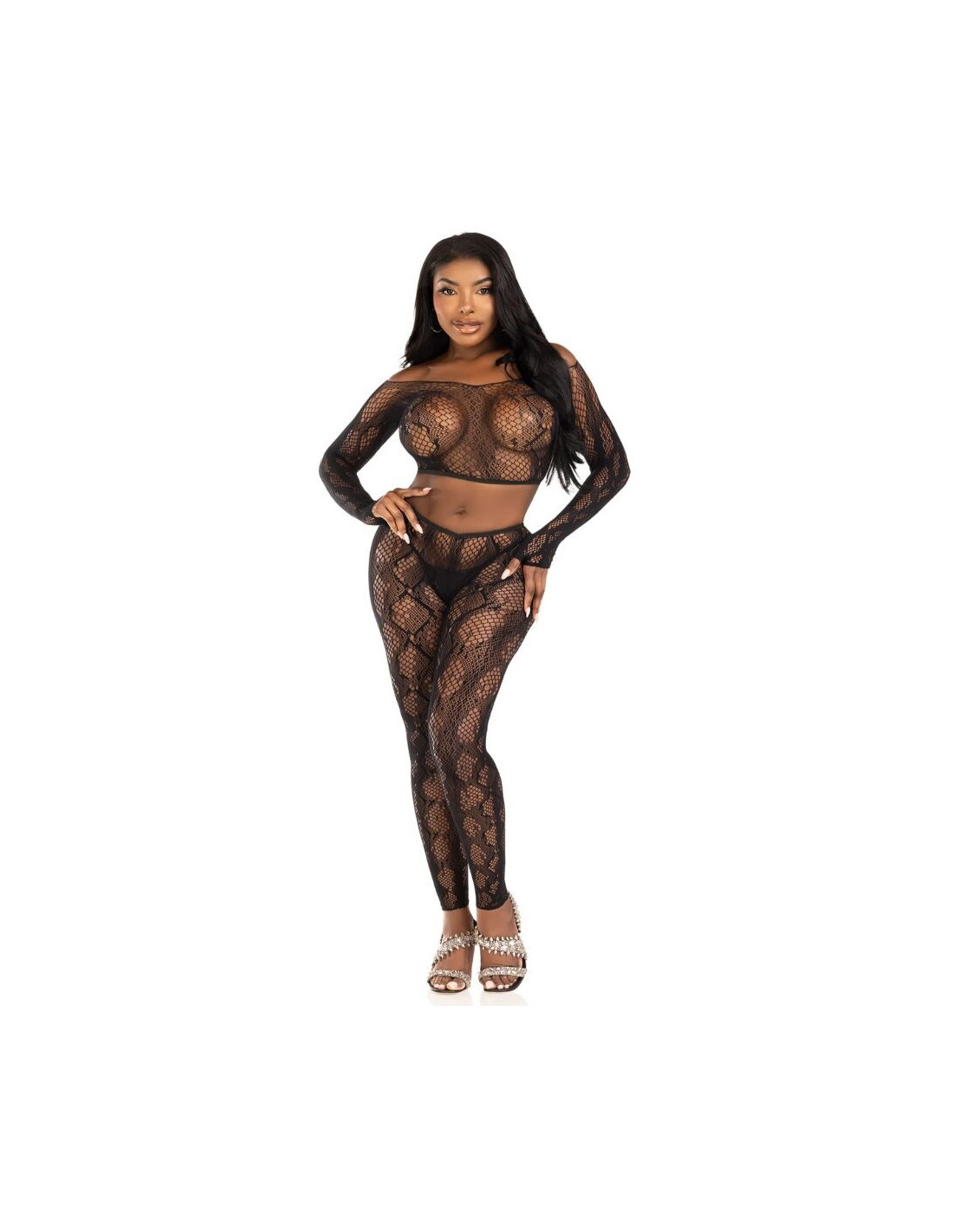 LEG AVENUE SETSAtkreipkite dėmesį į šį elastingą nėrinių ir tinklelio komplektą su gyvatės odos raštu. Jį sudaro ilgomis rankovėmis trumpas topas su atviru pečiu ir aukšto juosmens kojinės be pėdų, abu pagaminti iš minkšto, elastingos medžiagos, kuri priglunda prie figūros ir sukuria drąsų ir sensualų siluetą. Idealiai tinka intymiai nakčiai ar festivaliui, ypač derinant su šortais ar sijonu.