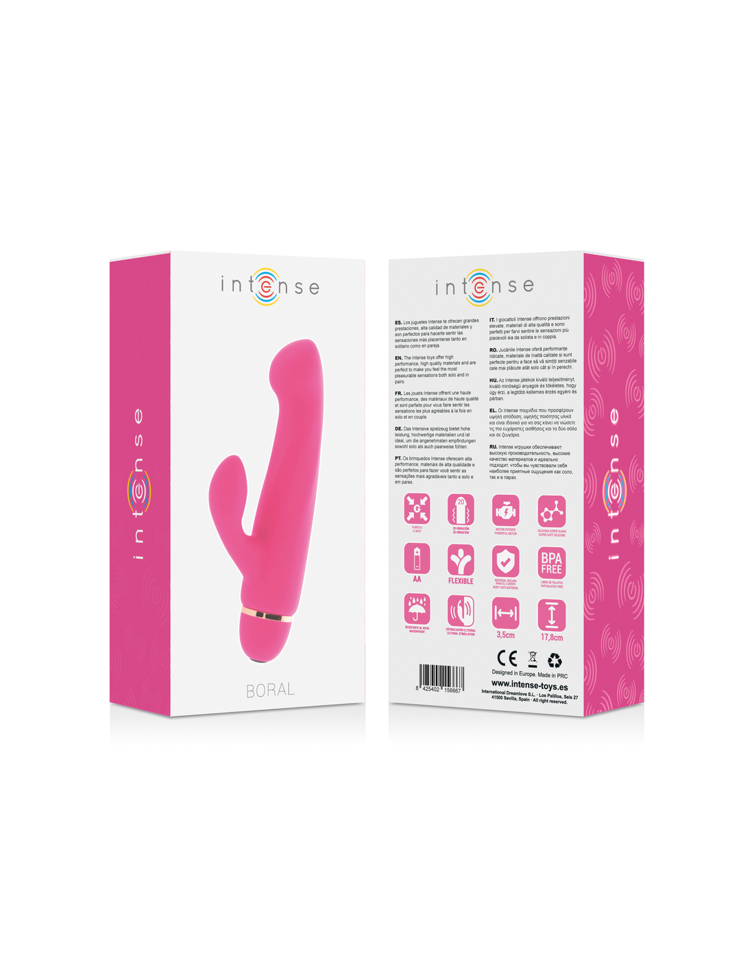Sustiprinkite savo malonumą su „Intese“ žaisliukais – klasikine koncepcija, kurią ne kiekvienas gali įgyvendinti. Ieškok ir rask – tokia yra „Intese“ žaisliukų filosofija. Dėl minkšto ir šilkinio medicininės kokybės silikono, elegantiškos ir diskretiškos formos, ieškokite tikslios savo vietos bet kur. Tai būtinas vibratorius šiuolaikinės moters kolekcijoje. Ieškokite atpalaiduojančio malonumo su patikimu sekso žaisliuku, kuris tyliai suteikia pojūčius bet kur. Be to, jo išlenktas galiukas puikiai tinka G taškui, o klitorio stimuliatorius vibruoja vienu metu, pasiekdamas idealų kulminaciją.