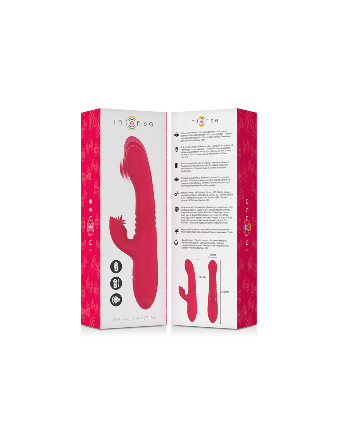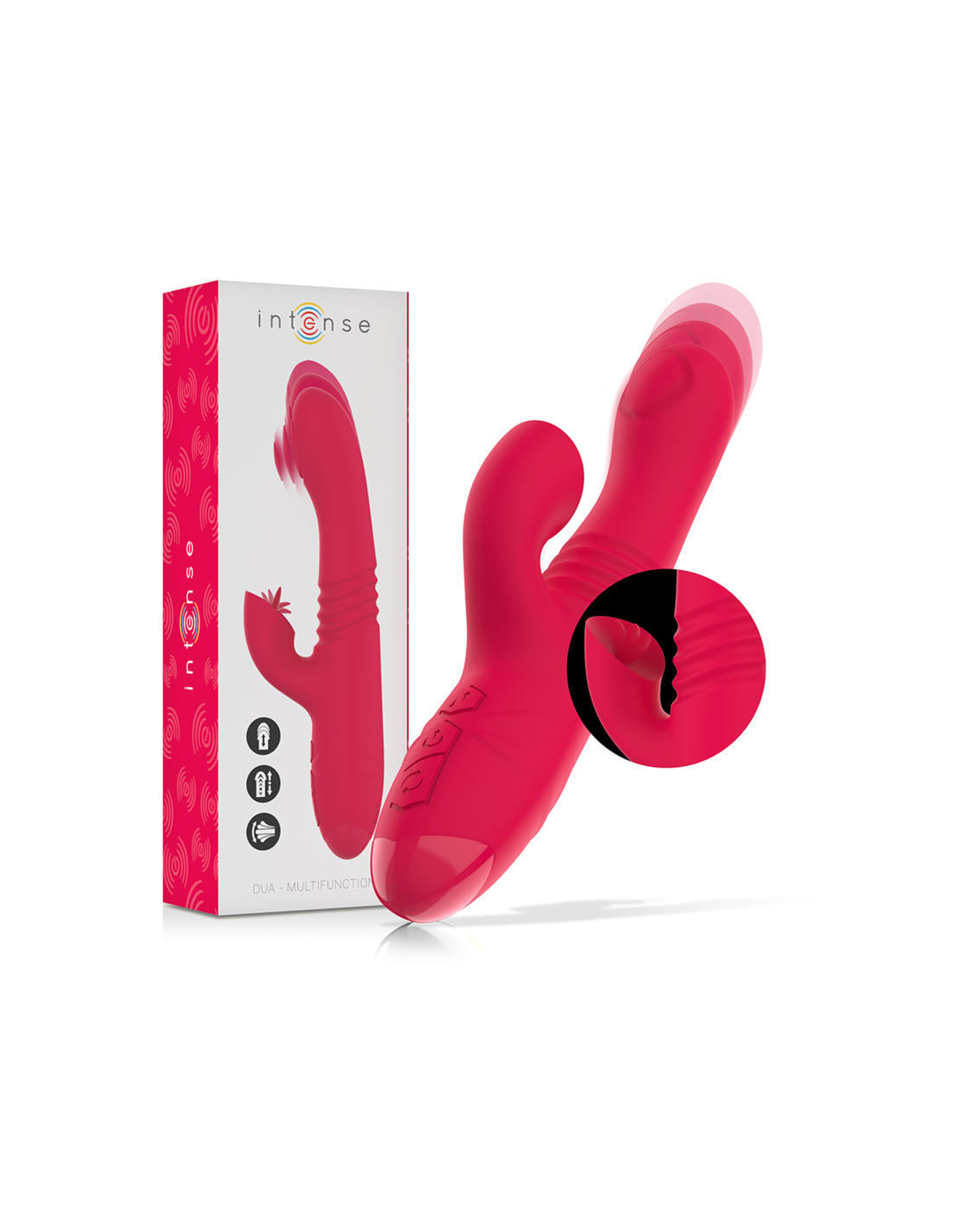 Daugiafunkcis INTENSE prekės ženklo vibratorius DUA yra novatoriškas sekso žaislas, sukurtas suteikti neprilygstamą malonumo patirtį. Ryški raudona spalva ir daugybė pažangių funkcijų leidžia šiam vibratoriui patenkinti giliausius jūsų troškimus. Štai pagrindinių jo savybių sąrašas: