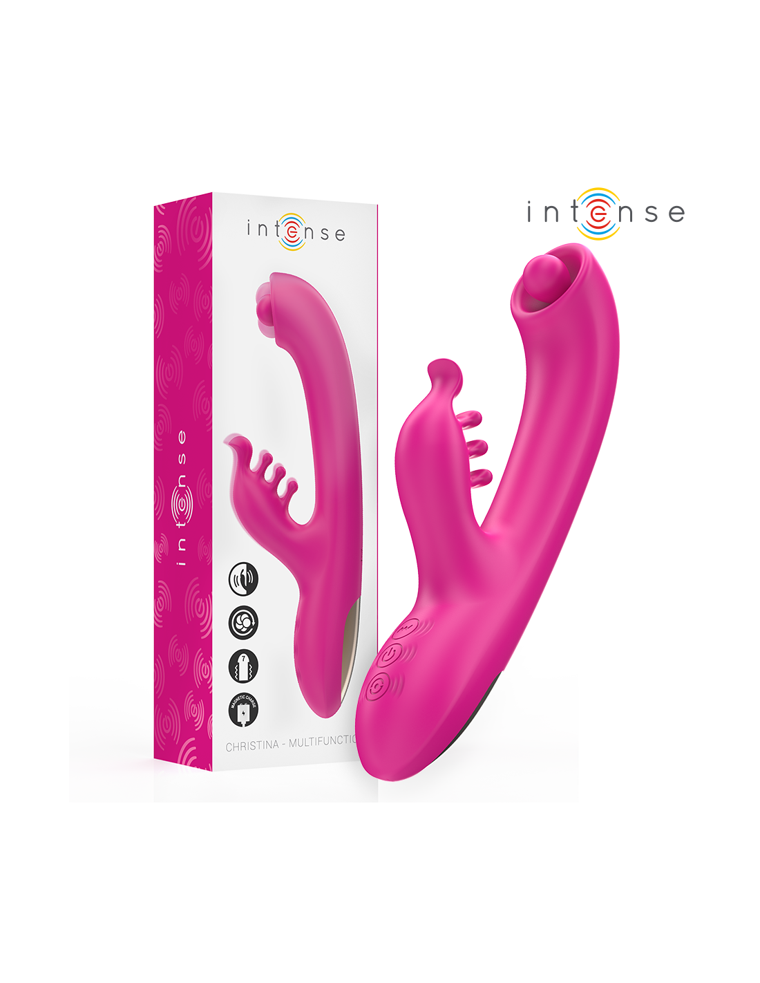 INTENSE HIGH TECHINTENSE Christina“ vibratorius sukurtas tiems, kurie ieško visaverčio, rafinuoto ir giliai stimuliuojančio malonumo. Ergonomiškas ir įtraukiantis triušio formos dizainas suteikia šiam erotiniam žaisliukui pažangių technologijų, galios ir elegancijos derinį viename įrenginyje.
