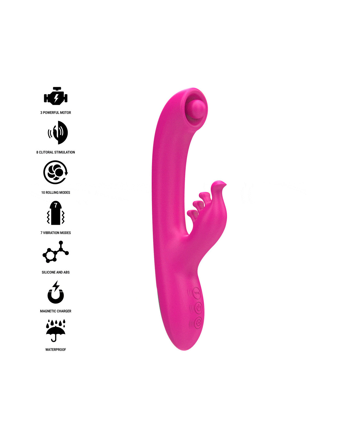Bendras 22,5 cm ilgis ir 12,5 cm įkišamas atkarpos ilgis užtikrina malonų ir lengvai valdomą įsiskverbimą, prisitaikydamas prie skirtingos anatomijos ir pageidavimų. Išorinė ranka stimuliuoja klitorį, o vibruojantis, besisukantis velenas veikia viduje, užtikrindamas gilų ir koordinuotą dvigubą stimuliaciją.
