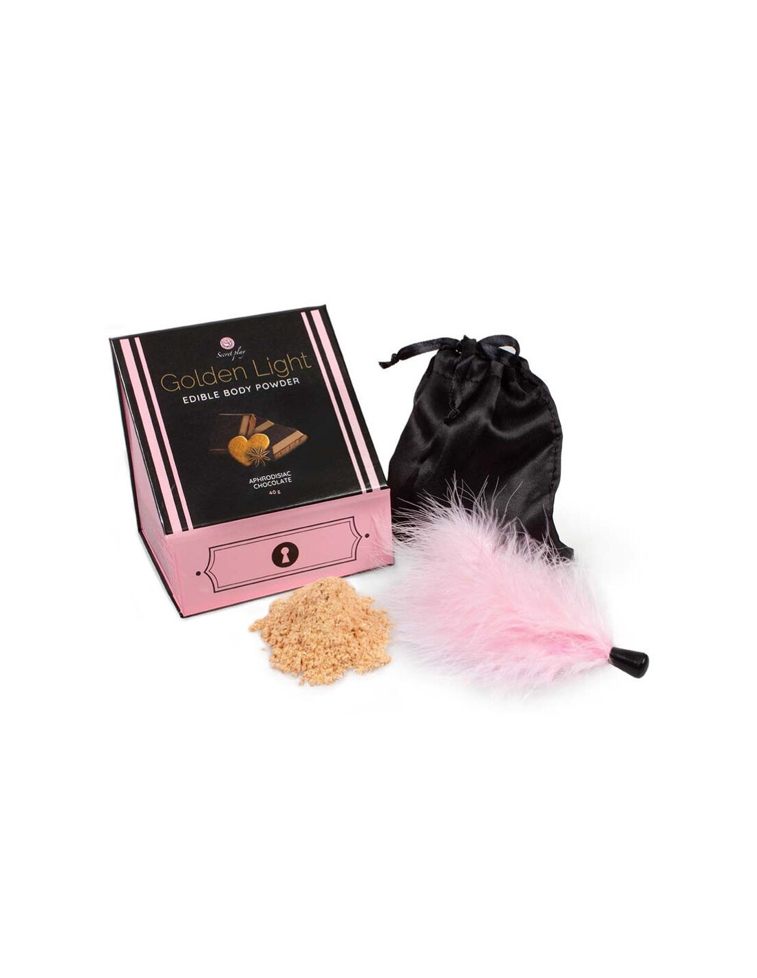 SECRETPLAY - AUKSINĖS ŠVIESOS RINKINYS AFRODIZIAKAS ŠOKOLADAS VALGOMIEJI MILTELIAI IR PLUNKSNOS