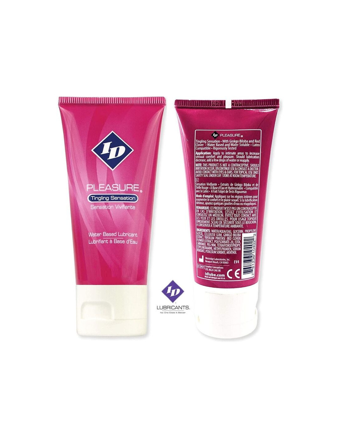 „ID Pleasure“ naudoja tą pačią vandens pagrindo formulę kaip ir „ID Glide“, tačiau su pridėtais natūraliais botaniniais ginkmedžio ir raudonųjų dobilų ekstraktais, kurie sustiprina tepamos srities stimuliaciją.