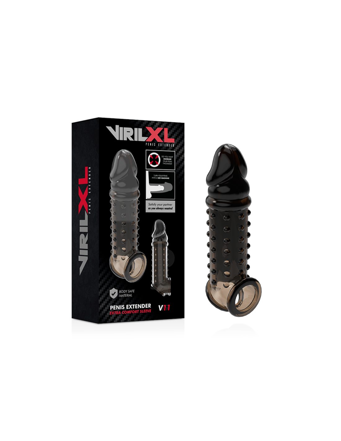 Padidinkite savo varpos storį ir sustiprinkite malonumą abiem su šia „VirilXL“ prailginamąja varpos mova. Ši minkšta, tampri mova gali būti nukirpta, kad tiktų daugumai dydžių. Tiesiog iškirpkite vietą, kur prasideda varpos galvutė, ir esate pasiruošę veiksmui. Pajusite kiekvieną pojūtį, o jūsų partnerė mėgausis nauju storiu.