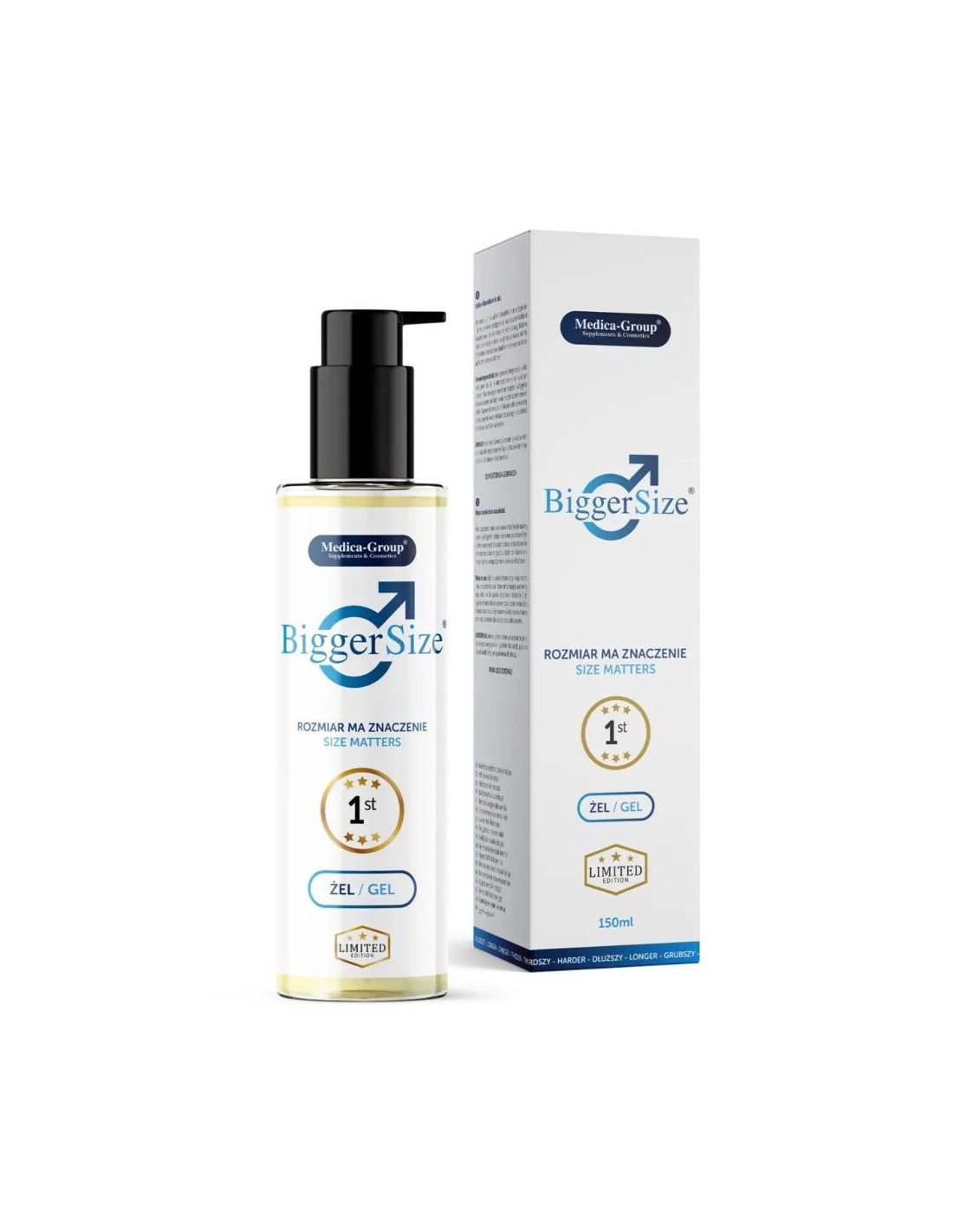 Patirkite neįtikėtinus pojūčius ir pagerinkite savo lytinį gyvenimą su „BiggerSize“ geliu: stiprumo, tankumo ir intensyvių pojūčių palaikymas.