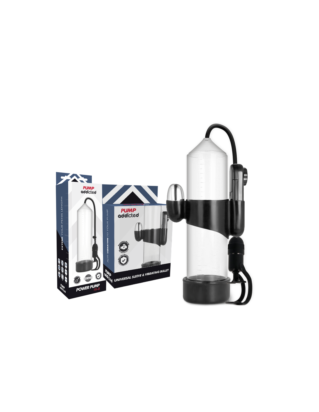 Lyg to būtų maža, jį taip pat galima derinti su kai kuriais „Pump“ serijos modeliais – dviejų dydžių „sleeve masturbadora“ – šis nuostabus aksesuaras paverčia jūsų mėgstamą „Pump Addicted“ masturbatoriumi, o jeigu to nepakaktų, vakuuminis penio dydis vizualiai padidėja 5 kartus, todėl naudojant „Pump“ sukuriamas išties patrauklus optinis efektas.