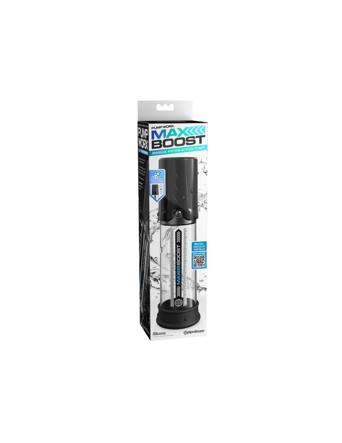 • Išskirtinis rankinis stūmoklinis mechanizmas – dėl bevariklio konstrukcijos „Max Boost“ puikiai tinka naudoti vonioje ar duše. Norėdami sustiprinti pojūtį, prieš pumpuodami pripildykite vamzdelį vandens.