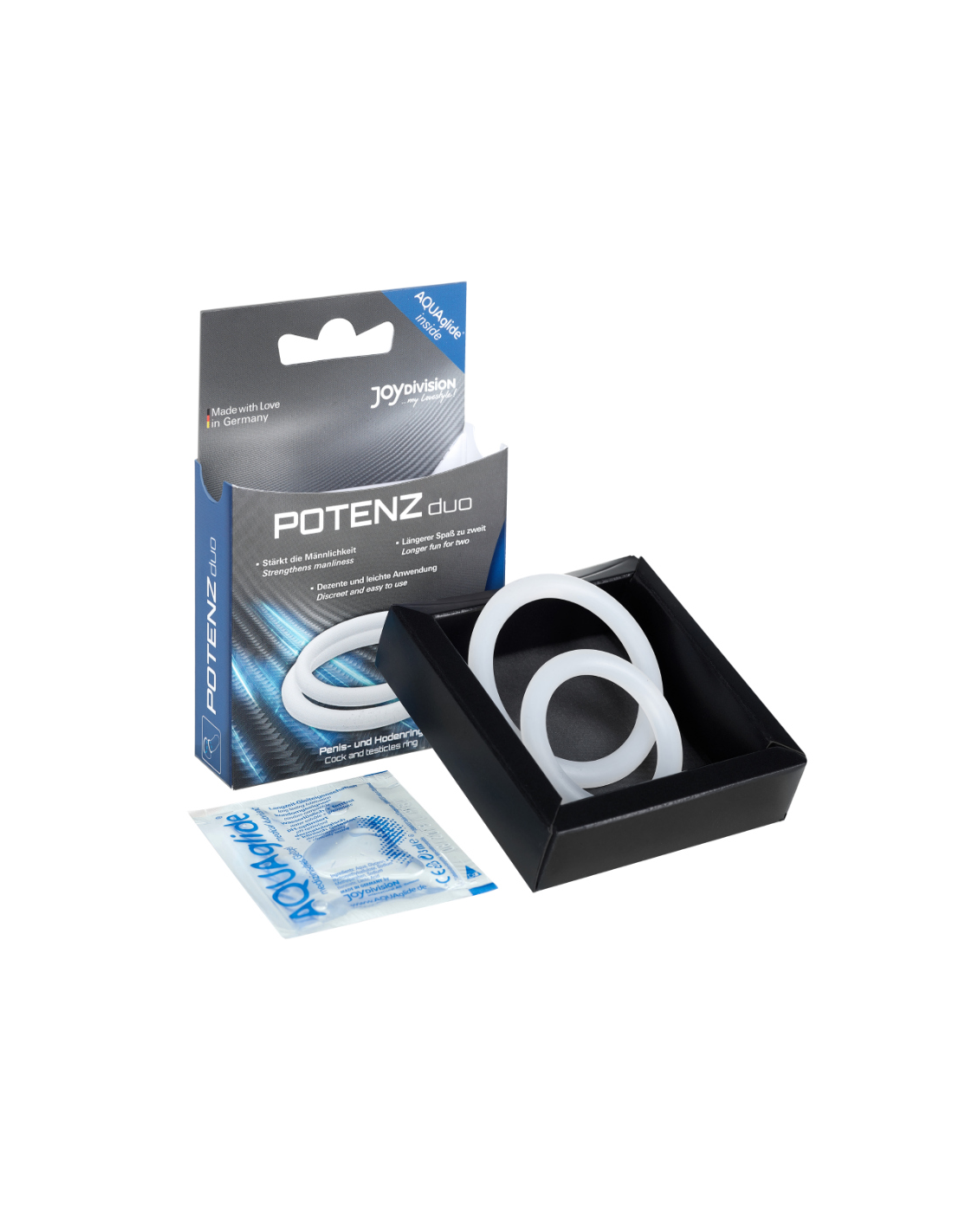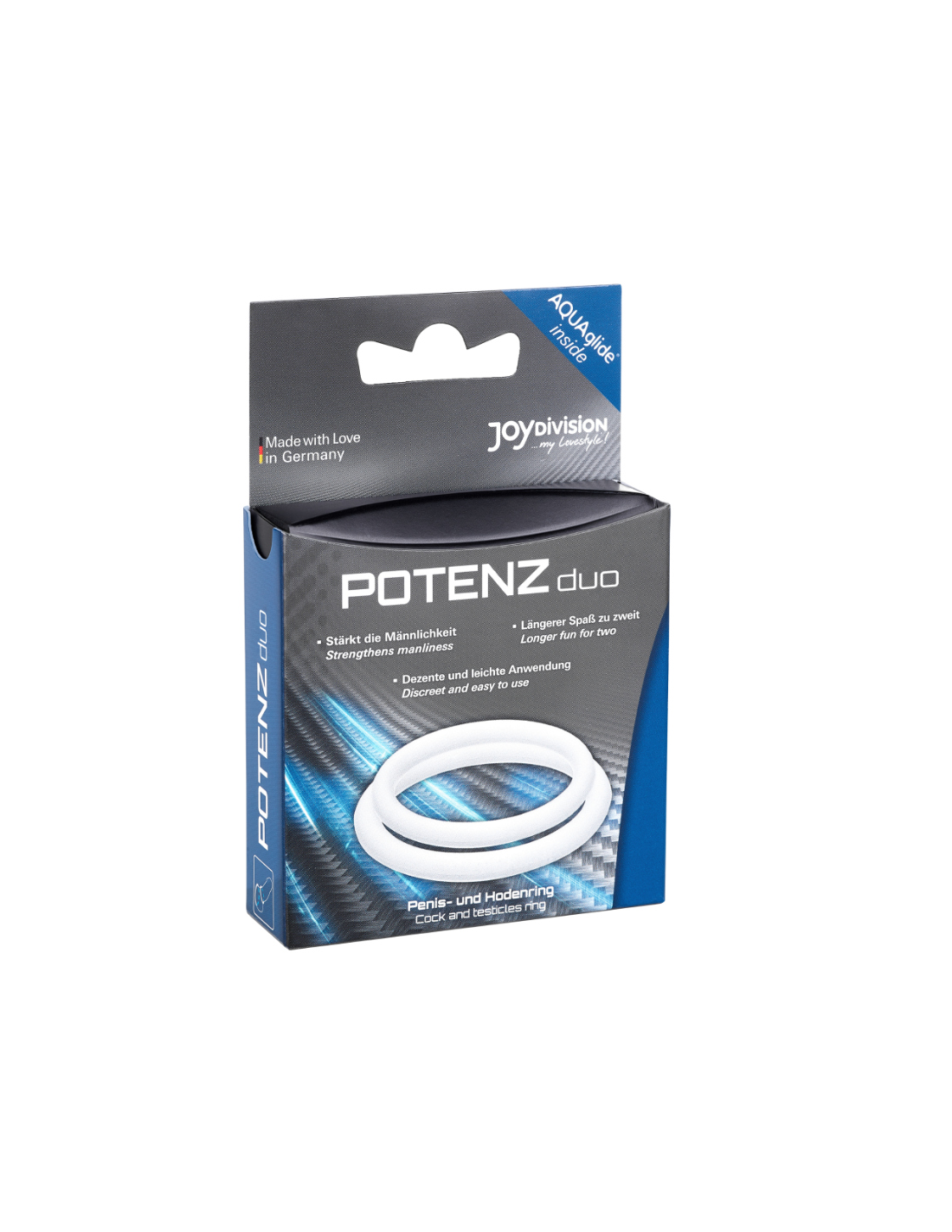 Medicininės kokybės silikono POTENZduo žiedai užtikrina tobulą žiedų sąveiką aplink varpą ir sėklides bei malonų tvirtą prigludimą, kad padidėtų jautrumas ir intensyvesnė erekcija. Jie taip pat gali būti naudojami esant erekcijos disfunkcijai (kraujo stazės sutrikimui varpoje), siekiant pagerinti sustingimą ir palaikyti erekcijos funkciją. Prašome laikytis pridėtos naudojimo instrukcijos!