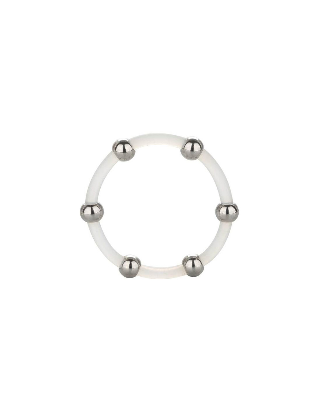CALEXOTICSSukurtas sustiprinti, sustiprinti ir dar labiau sustiprinti ekstazę kiekvieną kartą užsimaunant didelį plieniniais karoliukais puoštą silikoninį žiedą.