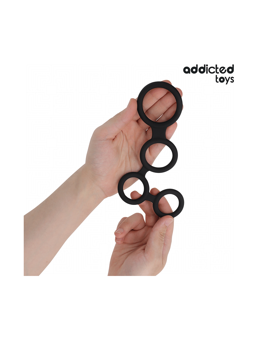 „Addicted Toys“ varpos žiedas su kamuoliukų skirtukais sukurtas tvirtai ir saugiai priglusti, sustiprinti erekciją ir padidinti stimuliaciją, padalijant sėklides į atskiras dalis. Kelių žiedų konstrukcija leidžia juos lanksčiai išdėstyti, užtikrinant skirtingus spaudimo lygius, kad patirtis būtų intensyvesnė.