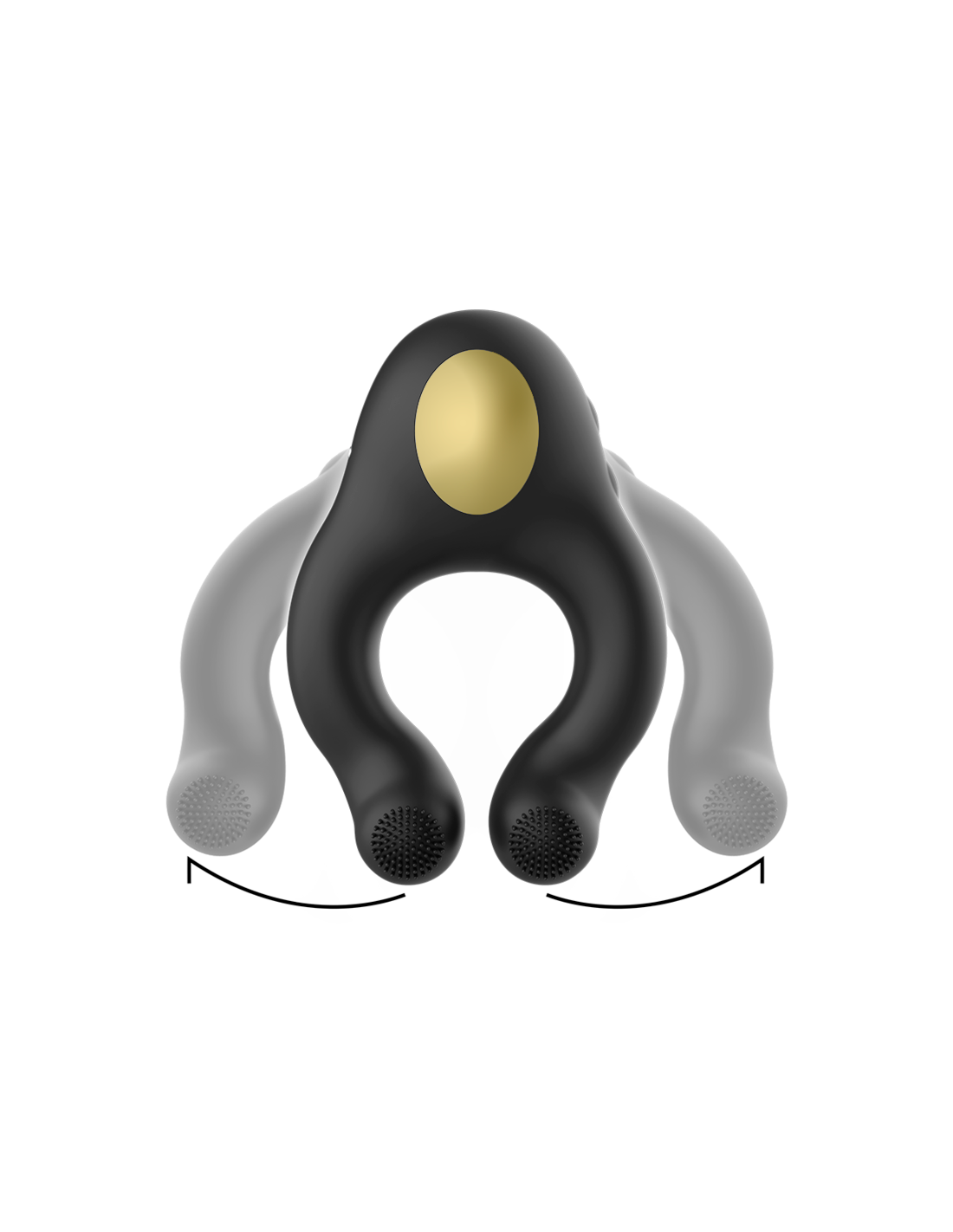ARMONY - SILIKONINIS VIBRUOJAMAS ŽIEDAS SU 3 ĮKRAUNAMAIS VARIKLIAIS, JUODAS - AUKSINIS