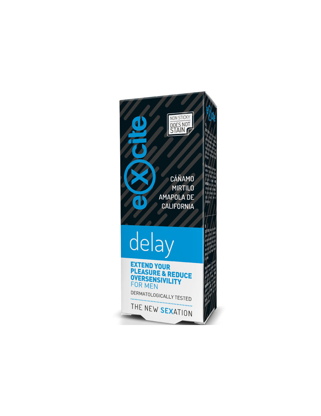 EXCITE DELAY“ – tai gelis, kuriame derinami augalų ekstraktai su gerai žinomomis raminančiomis ir atpalaiduojančiomis savybėmis bei maloniu gaivinančiu poveikiu, kuris sumažins streso lygį ir jautrumą intymiose vietose; idealiai tinka poros santykiams pratęsti.
