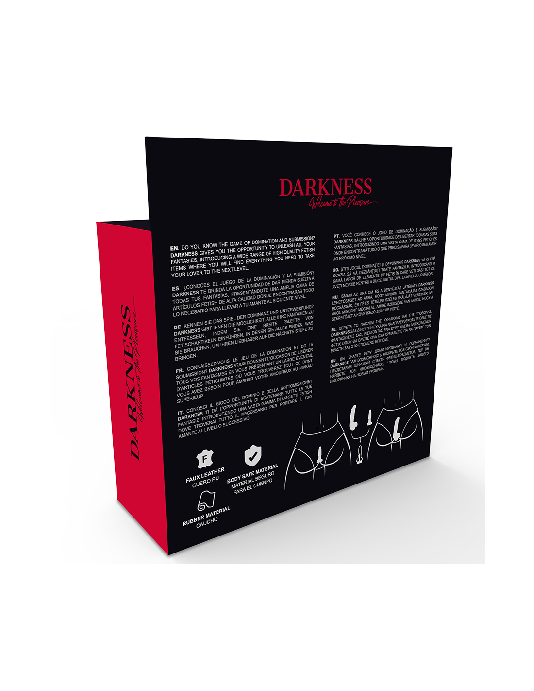 „Darkness“ – tai naujos kartos 2020 metų prekės ženklas, kurio visos medžiagos yra puikios kokybės, užtikrinančios tobulą gamybą tiek pradedantiesiems, tiek pažengusiems vartotojams, mėgstantiems fetišą ar BDSM pasaulį.