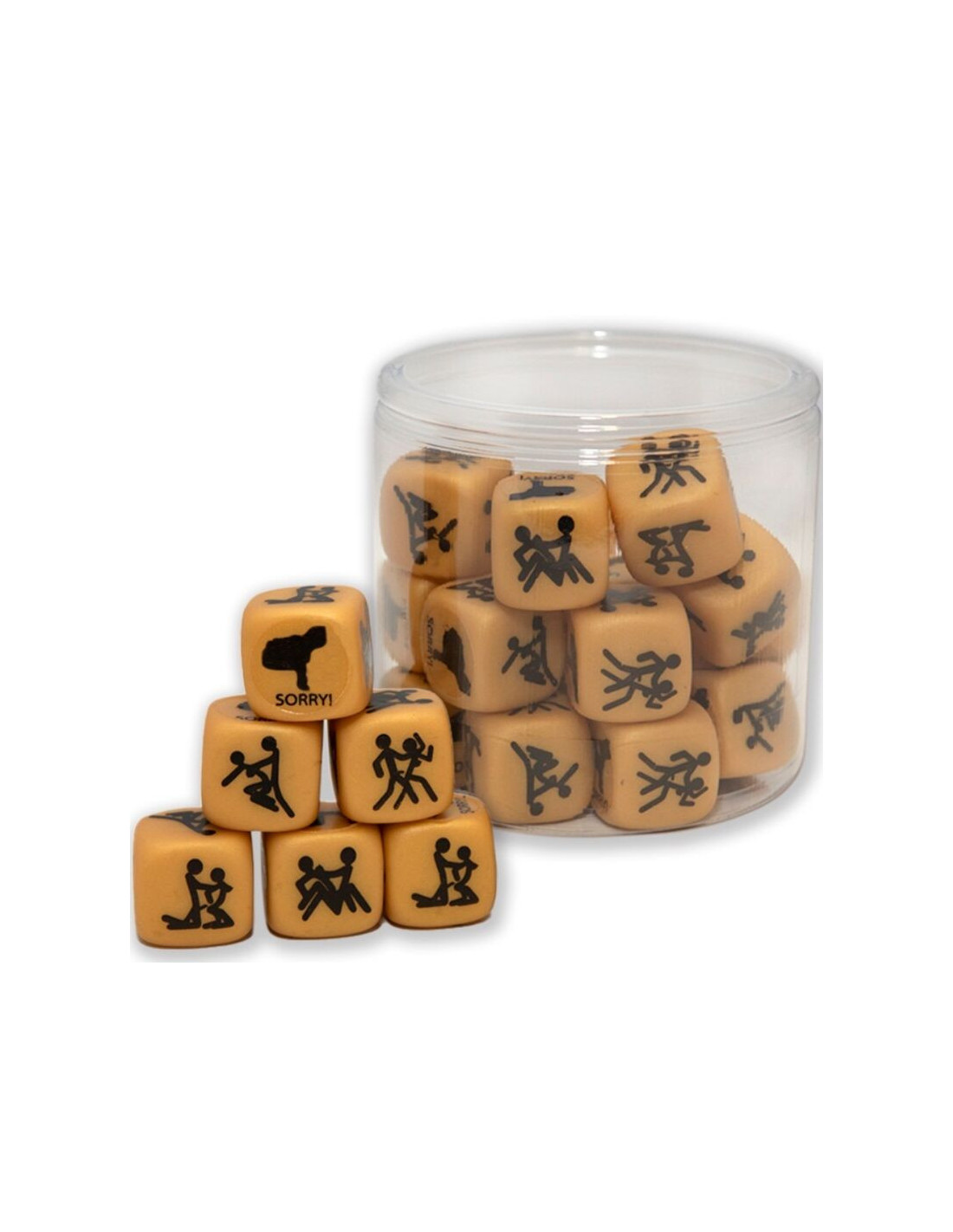 Pridėkite linksmybių ir išdaigų savo bernvakariui / mergvakariui ar teminiam vakarėliui su šiuo ypatingu kauliuku, papuoštu elegantiška aukso spalva. Šis kauliukas puikiai tinka ledui pralaužti ir vakarėliui pagyvinti drąsiais ir smagiais žaidimais. Kiekviena kauliuko pusė vaizduoja skirtingą seksualinę pozą, suteikdama idėjų porų žaidimams arba norint, kad šventė būtų interaktyvesnė ir kupinesnė juoko.