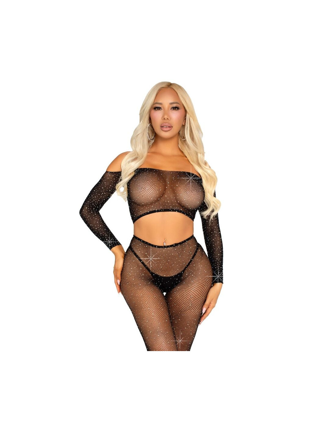 LEG AVENUE SETSSužibėkite su tinklinio audinio palaidine ir tamprėmis, sukurtomis mėgstančioms išsiskirti. Šis drąsus ir žavingas komplektas pasižymi subtiliu tinklinio audinio dizainu, papuoštu žėrinčiais cirkoniais, derindamas aštrų žavesį su akinamu stiliumi.