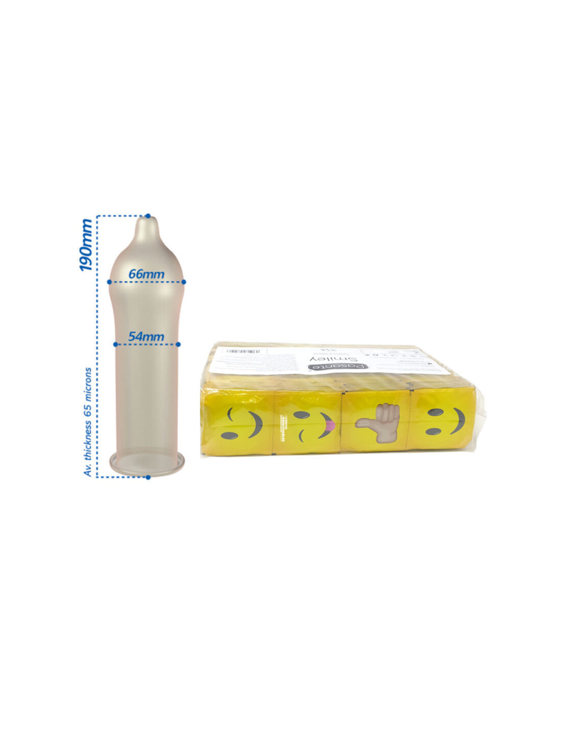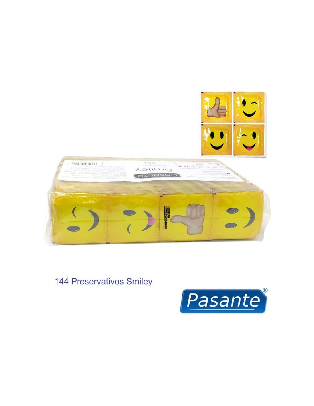 „Pasante“ prekės ženklo „Smiley“ prezervatyvai pasižymi paprastumu: patogumu ir pojūčiu. Rinkinį sudaro 4 skirtingų dizainų lapeliai, kurių kiekvienas turi maždaug 36 vienetus. Prezervatyvai su 4 linksmais besišypsančių veidelių atvaizdais, idealiai tinka dalinti vakarėliuose, bernvakariuose ar mergvakariuose.