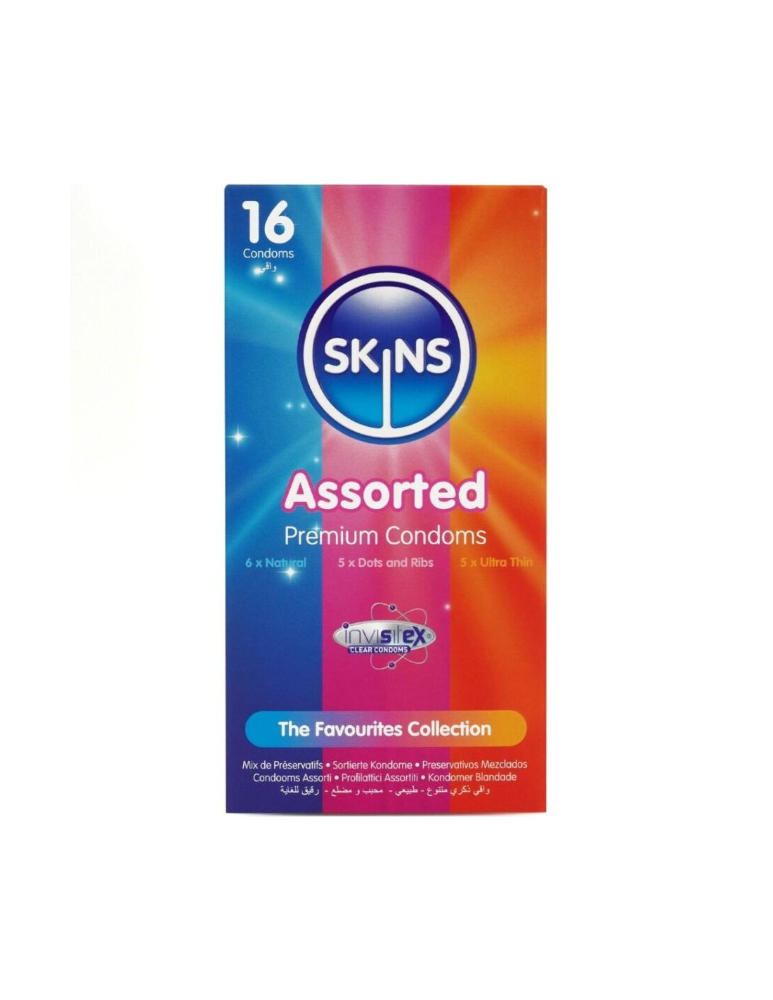Paįvairinkite savo lytinį gyvenimą ir būkite apsaugoti su „Skins“ prezervatyvų asortimentu. 16 atskirų prezervatyvų 3 įdomių rūšių. Kiekvienoje pakuotėje yra natūralių, taškuotų, briaunuotų ir itin plonų prezervatyvų, kurie leis mėgautis įvairiais malonumo nuotykiais su šiuo „Skins“ mėgstamiausių prezervatyvų rinkiniu.