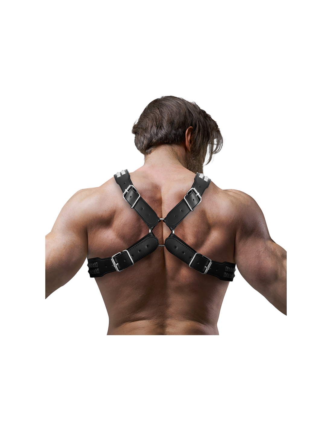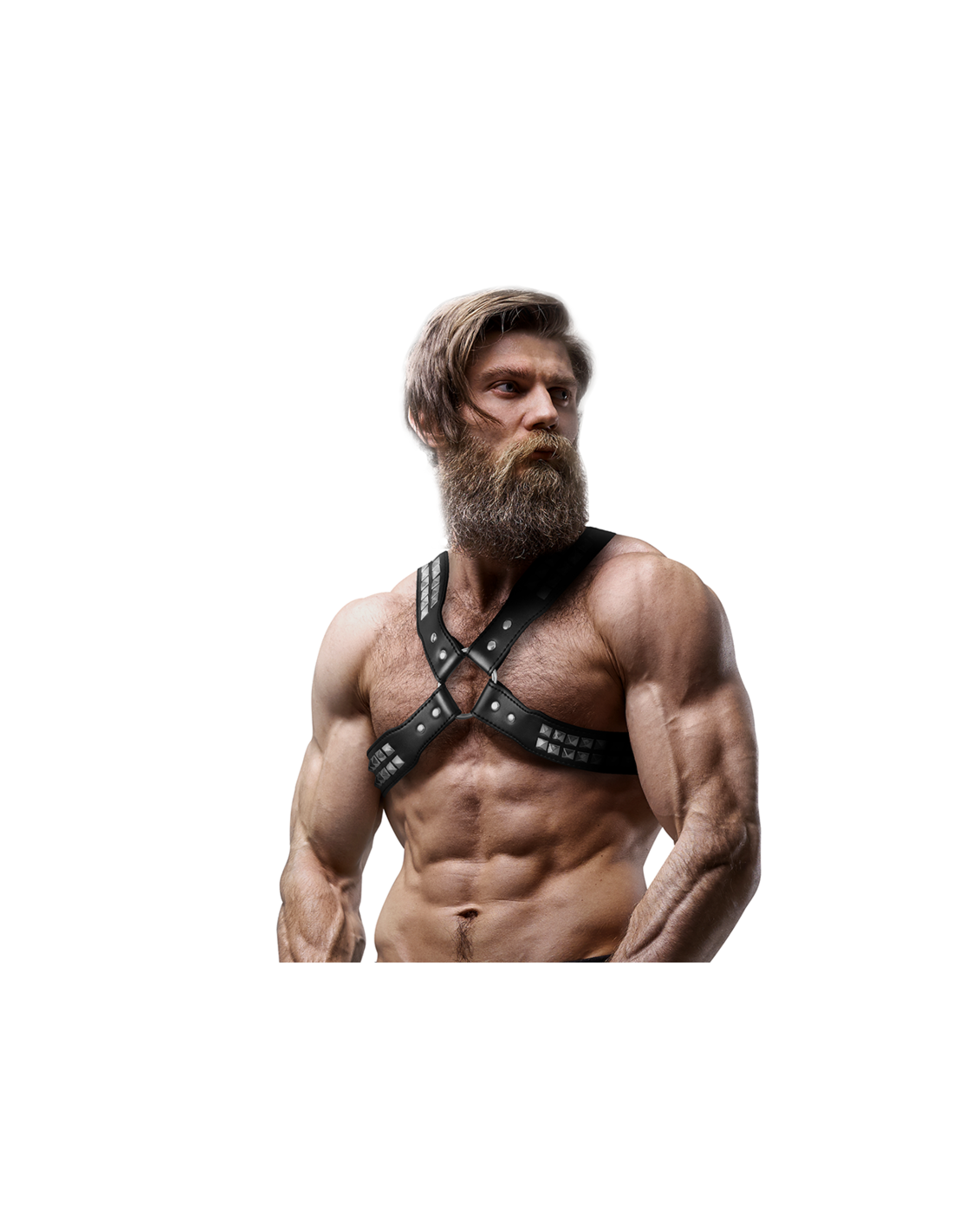 FETISH SUBMISSIVE ATTITUDE - VYRIŠKAS SUKRĖTOTAS KRŪTINĖS DIRŽAS IŠ EKO ODOS SU KNIEDĖMIS