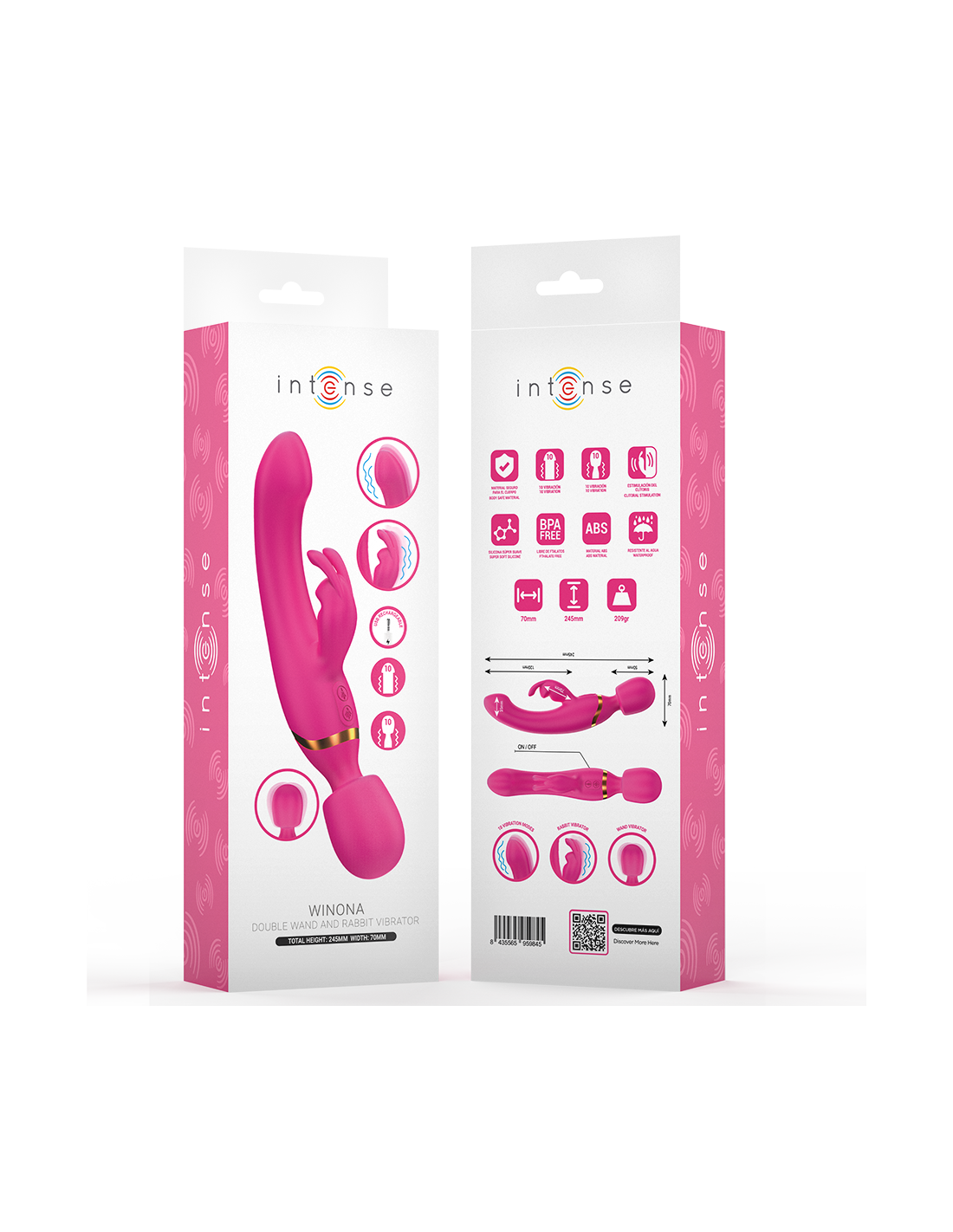 „Intense“ gaminamas „Winona Rabbit & Wand“ dvigubas vibratorius – tai puikus technologijos, dizaino ir malonumo derinys. Jo novatoriškas „2-in-1“ formatas sujungia triušio tipo stimuliatorių su galingu lazdelės tipo vibratoriumi, suteikiant visapusišką patirtį, kuri patenkins visas jūsų fantazijas. Nesvarbu, ar norite stimuliuoti G tašką, klitorį ar bet kurią kitą erogeninę zoną, „Winona“ sukurta taip, kad prisitaikytų prie jūsų norų ir lydėtų jus kiekvieną malonumo akimirką.