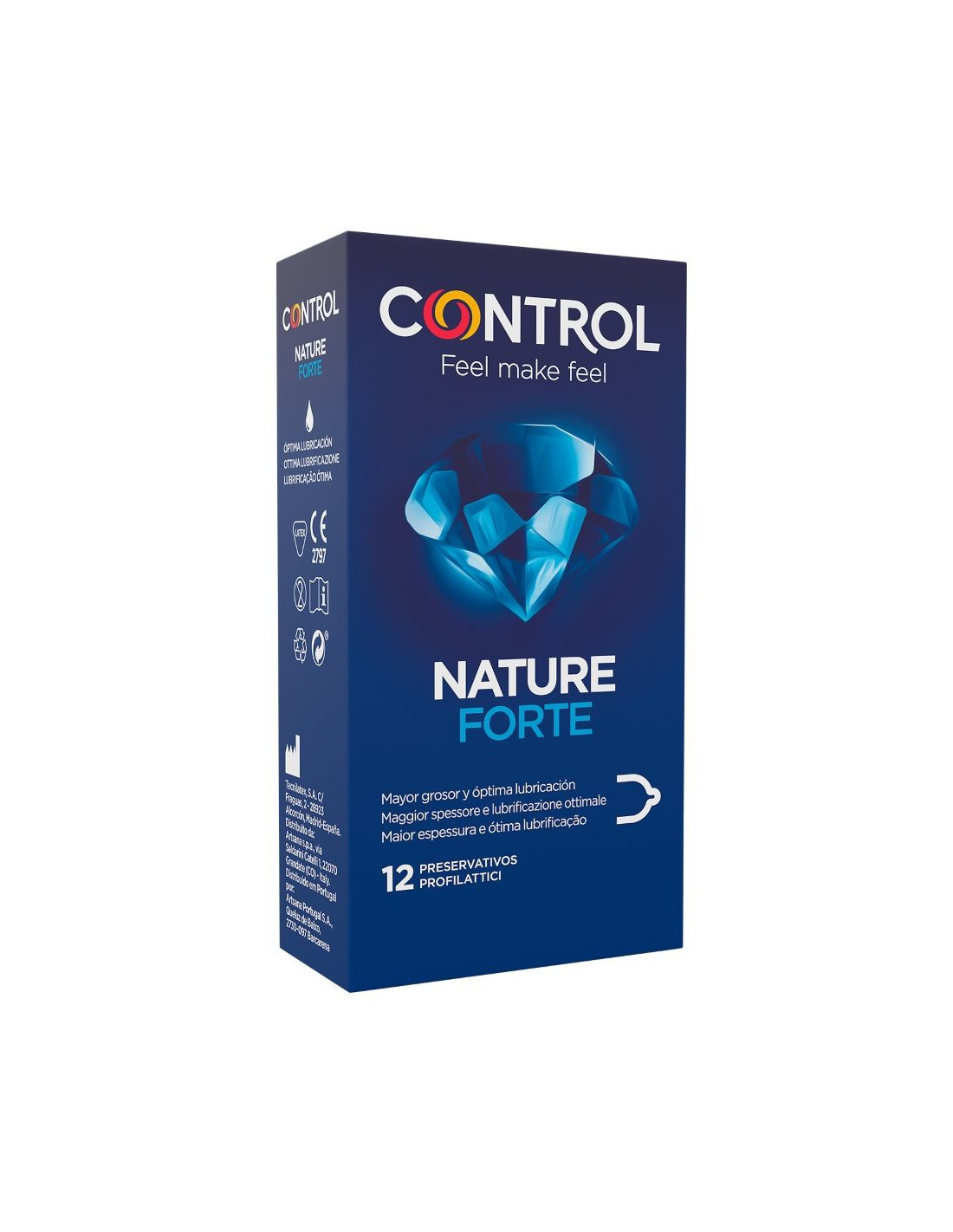 Specialus „Control Forte“ dizainas užtikrina puikų prisitaikymą, todėl jūsų lytiniai santykiai tampa labiau pasitenkinimą teikiantys. „Control Forte“ yra storesnis, tačiau išlaiko optimalų jautrumo lygį.