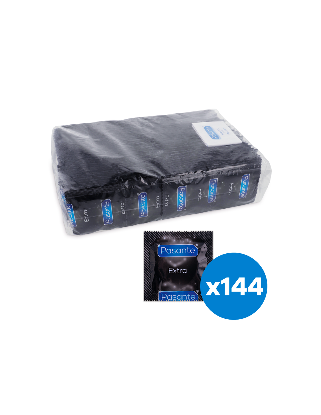 „Pasante Extra“ prezervatyvai yra ypač stori su pridėtu lubrikantu. Lygūs, lygiagretūs ir natūralios spalvos.