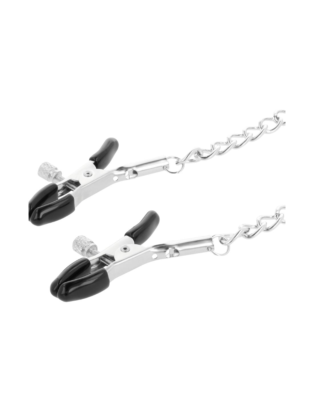 Šie grandinėlės formos spenelių laikikliai iš „Darkness“! Jie yra unisex ir labai lengvai naudojami. Laikikliai ir grandinėlė pagaminti iš nerūdijančio plieno ir aliuminio. Juose nėra nikelio. Spenelių laikiklius galite naudoti savo išdykusioms paslaptims arba kaip stimuliuojantį aksesuarą, kai mylitės su mylimuoju.