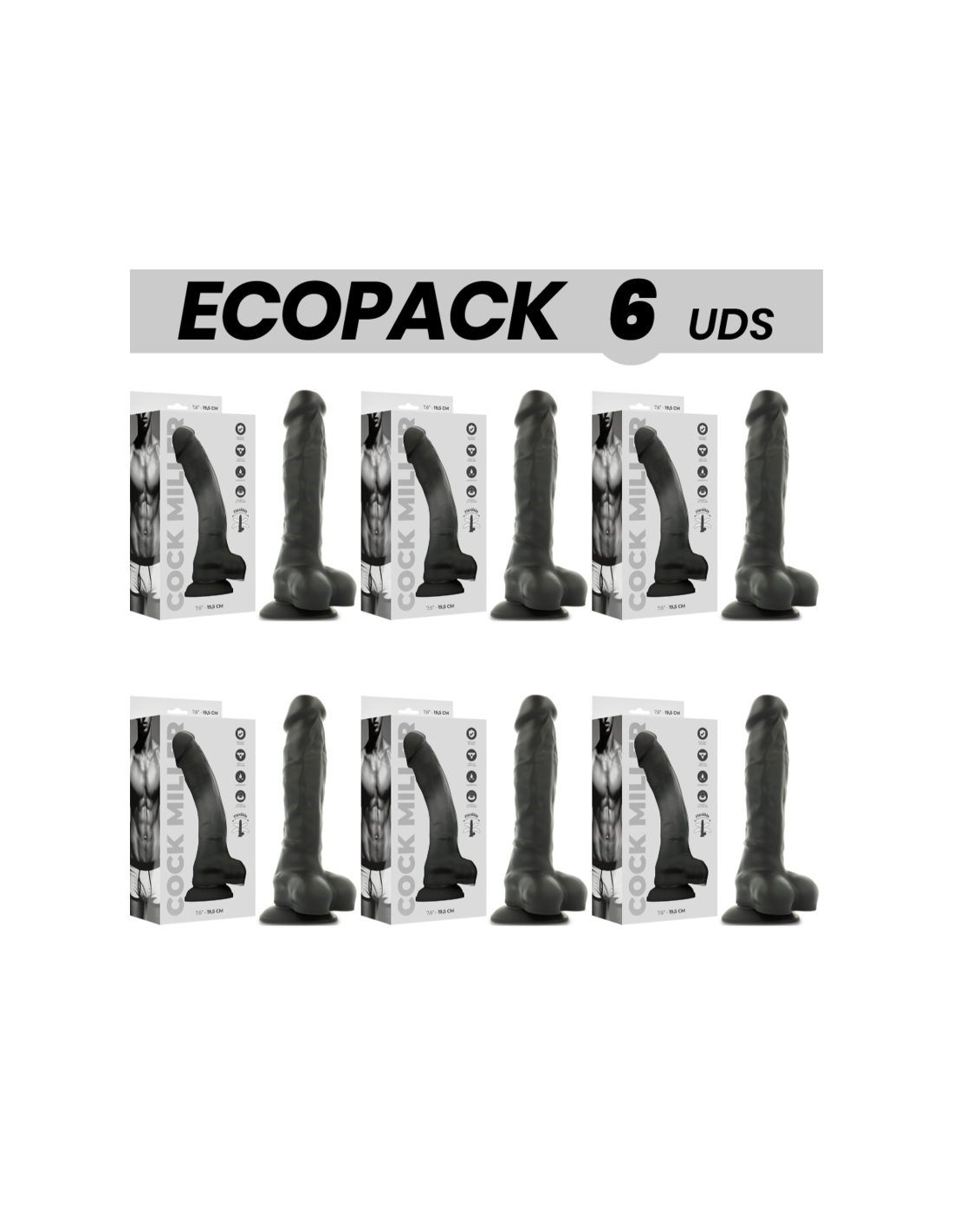 ECOPACK 6 VIENETAI - COCK MILLER SILICONE TANKIO JUODAS COCKSIL 19,5 CM