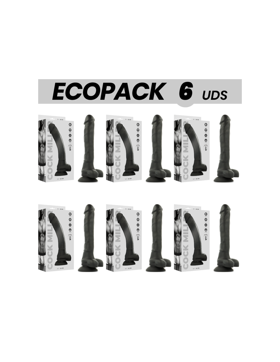 ECOPACK 6 VIENETAI - COCK MILLER SILIKONINIO TANKIO FORMULINIS JUODAS 24 CM