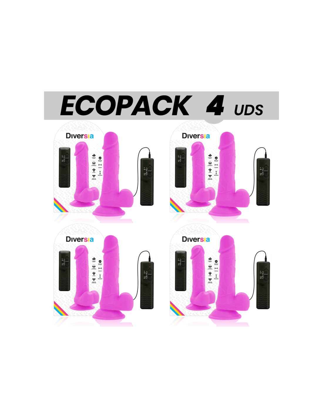 ECOPACK 6 VIENETŲ - DIVERSIA LANKSTUS VIBRUOJAMAS DILDO VIOLETINIS 20,5 CM - O - 4,2 CM